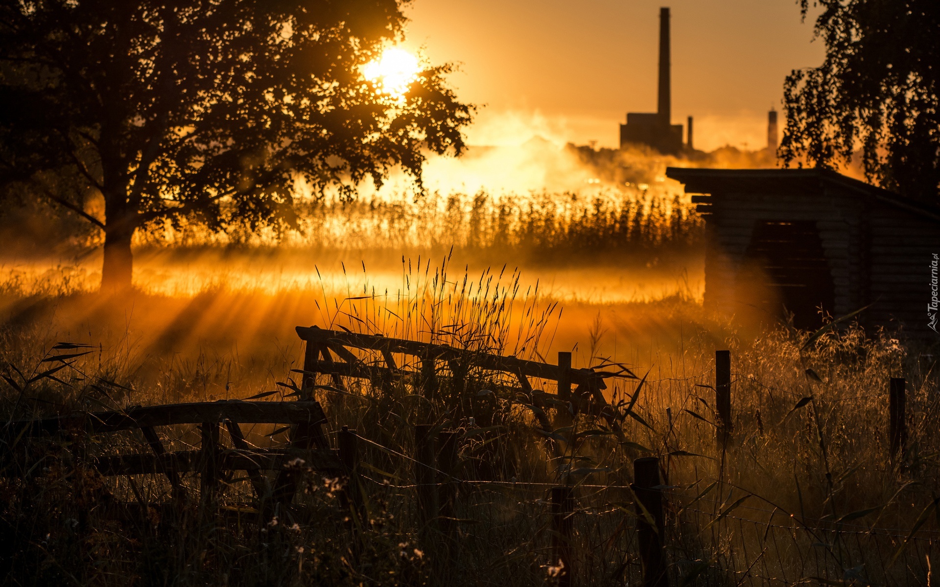 Edytor tapety: Zachód słońca, Fabryka