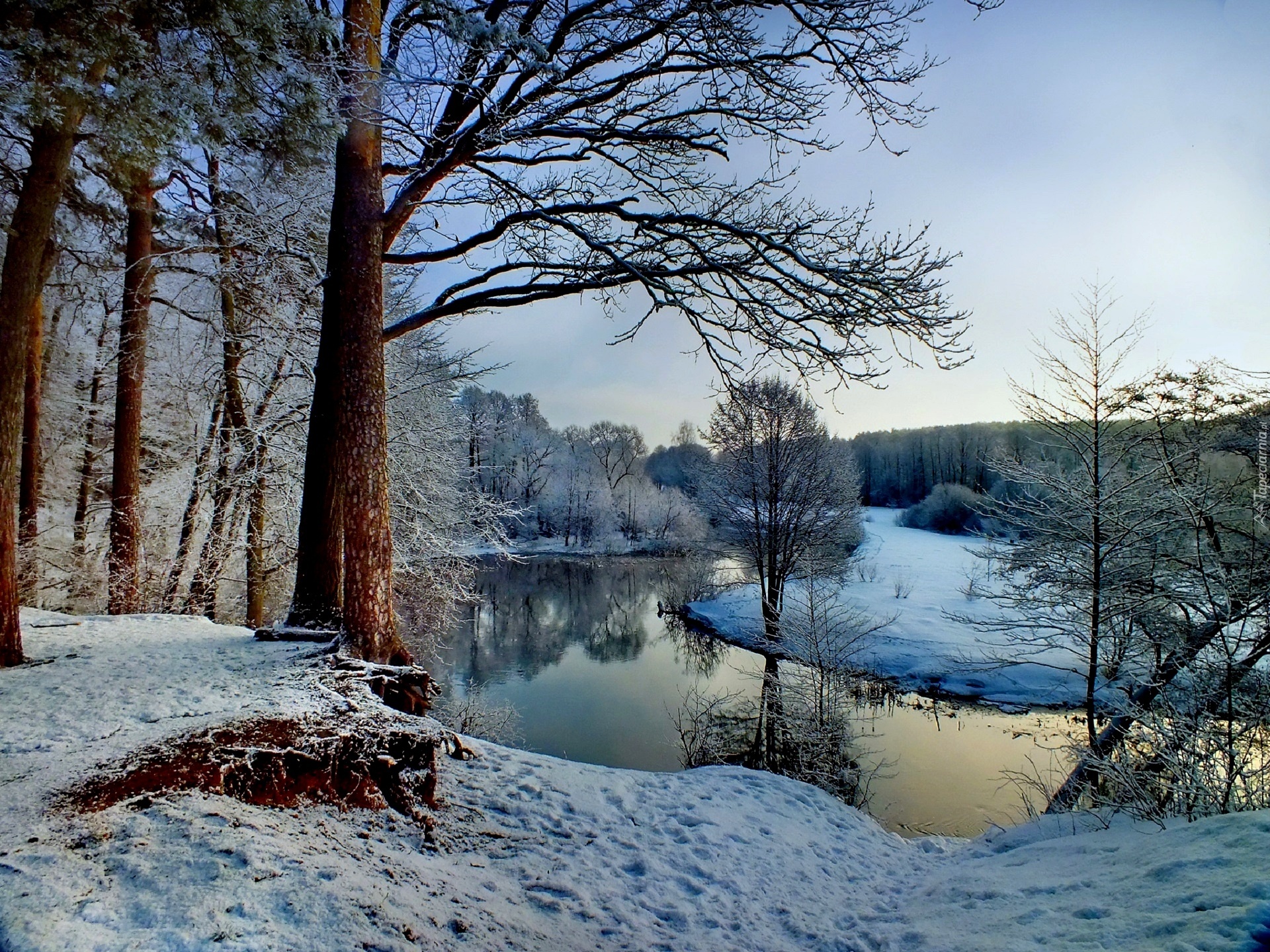 Edytor tapety: Rzeka, Drzewa, Śnieg