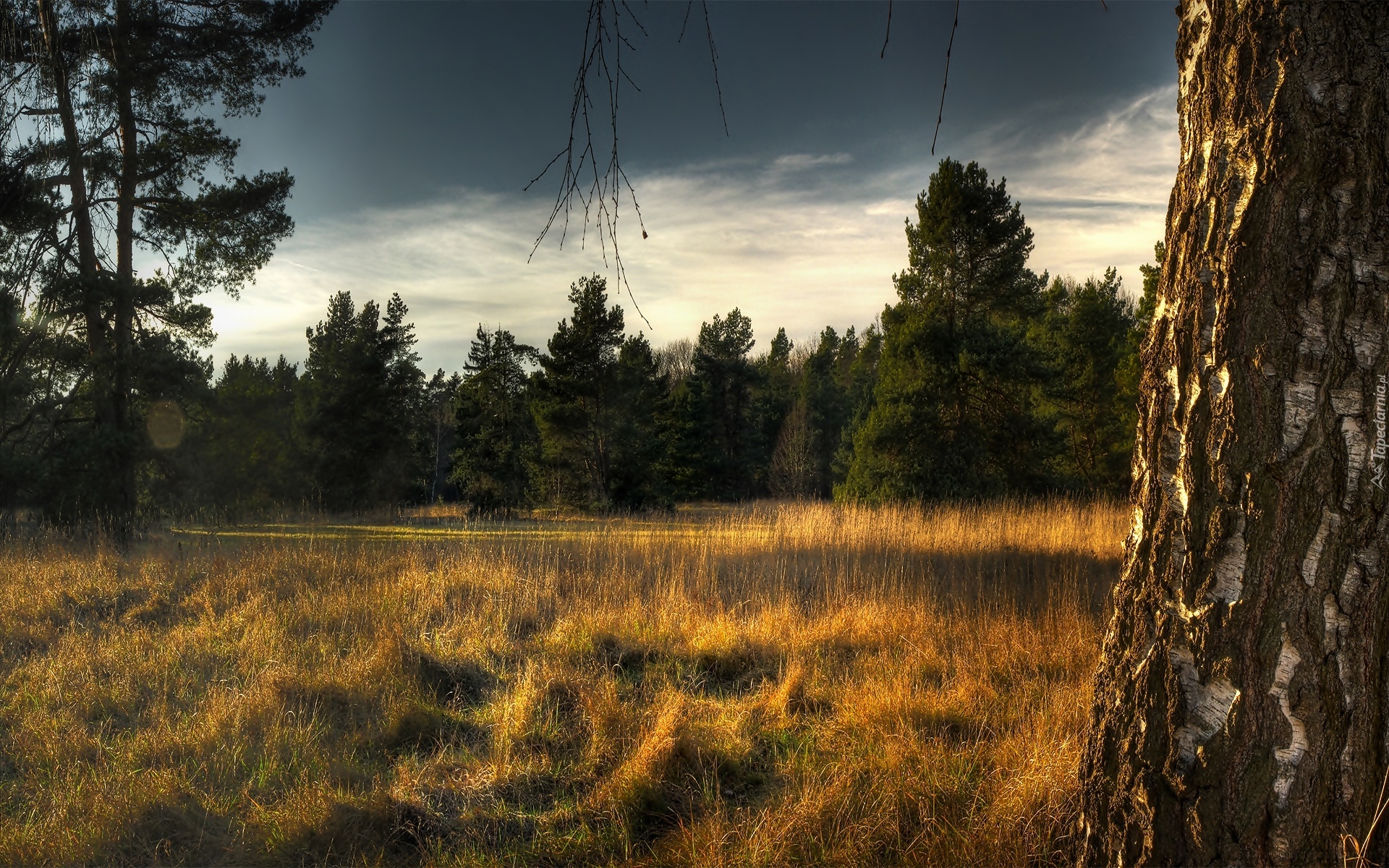 Edytor tapety: Jesień, Las, Polana, Trawa, Drzewa
