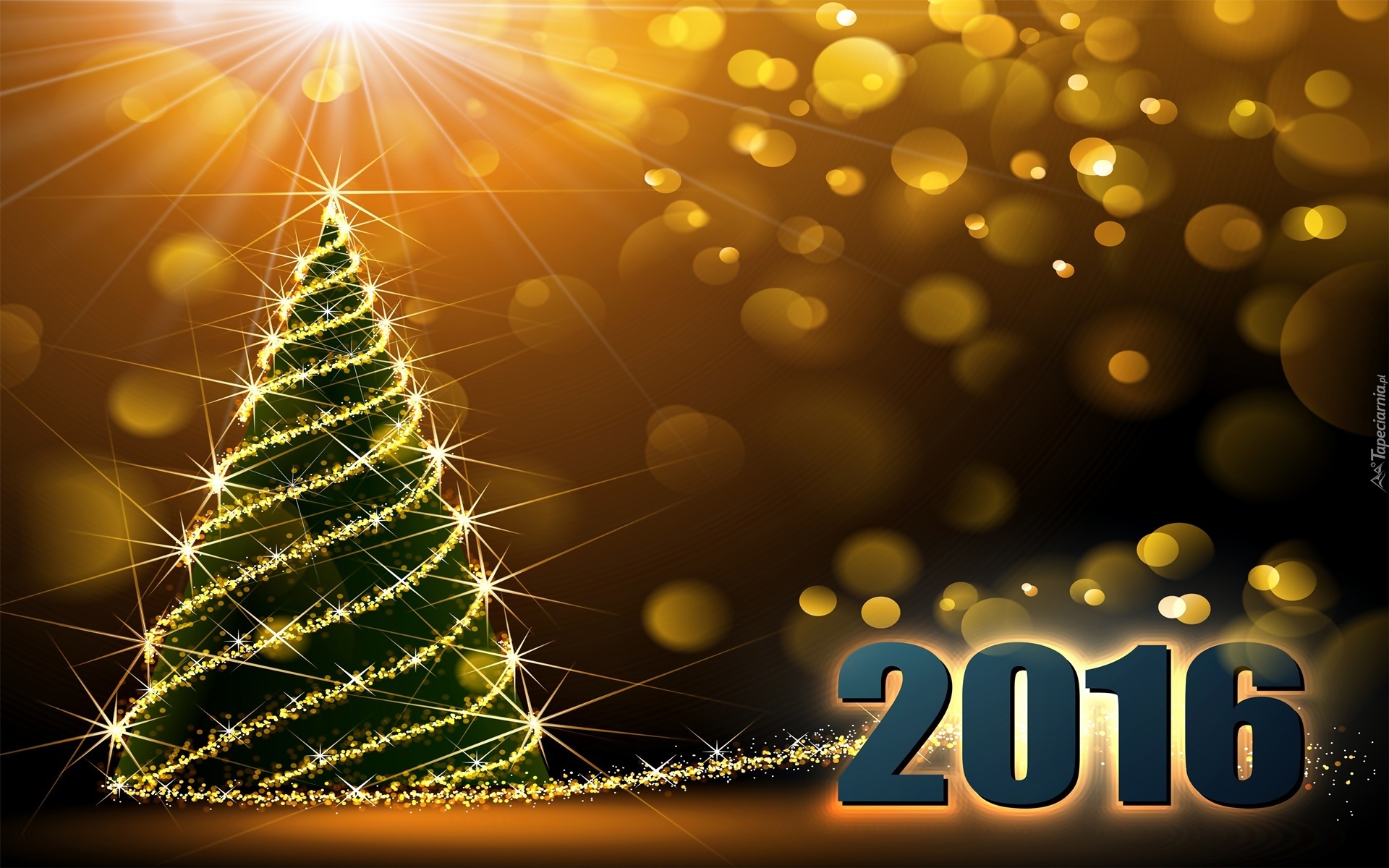 Edytor tapety: Nowy Rok, 2016, Choinka, Promienie, Blask