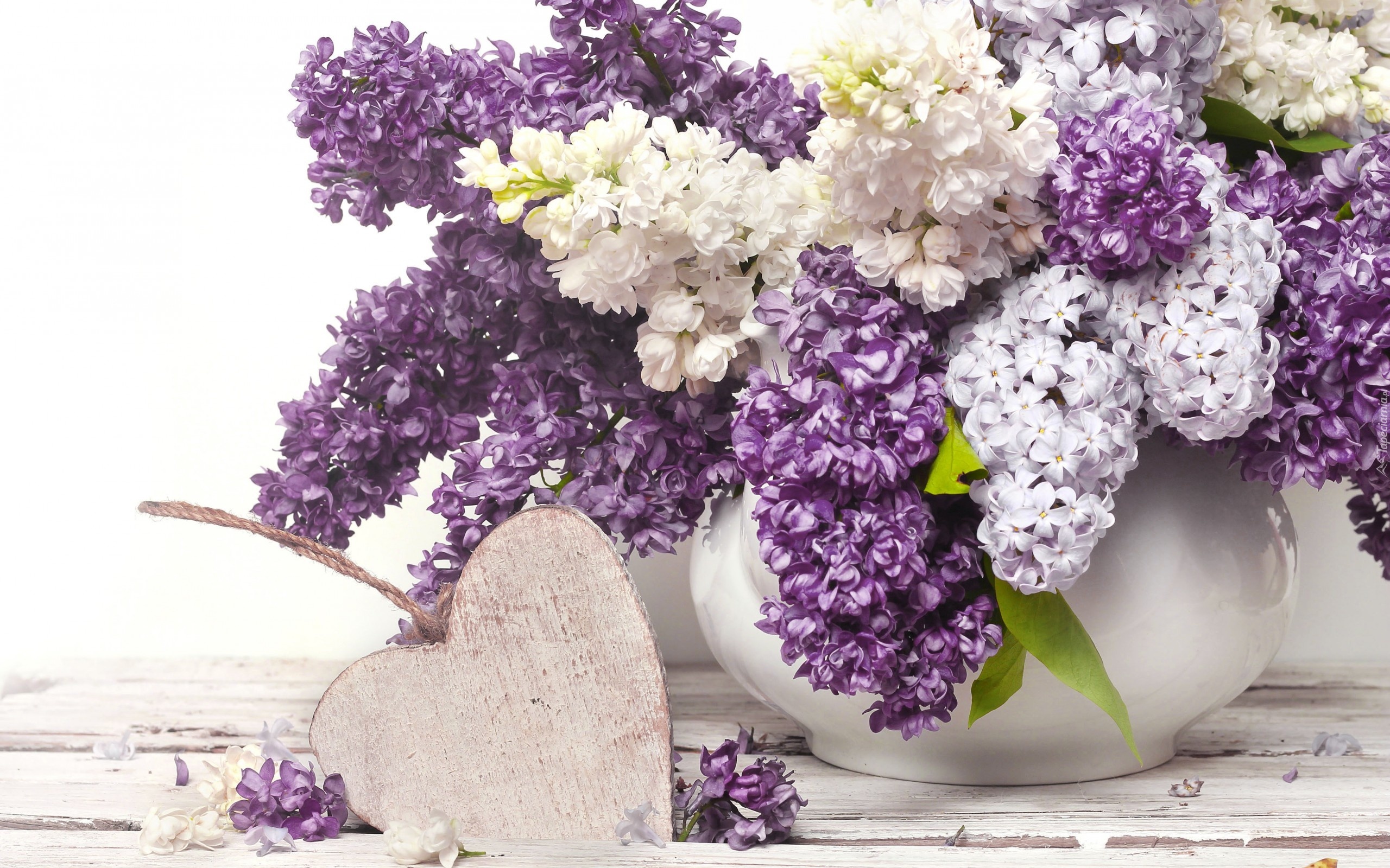 Edytor tapety: Bukiet, Bez, Liliowy, Biały, Serduszko