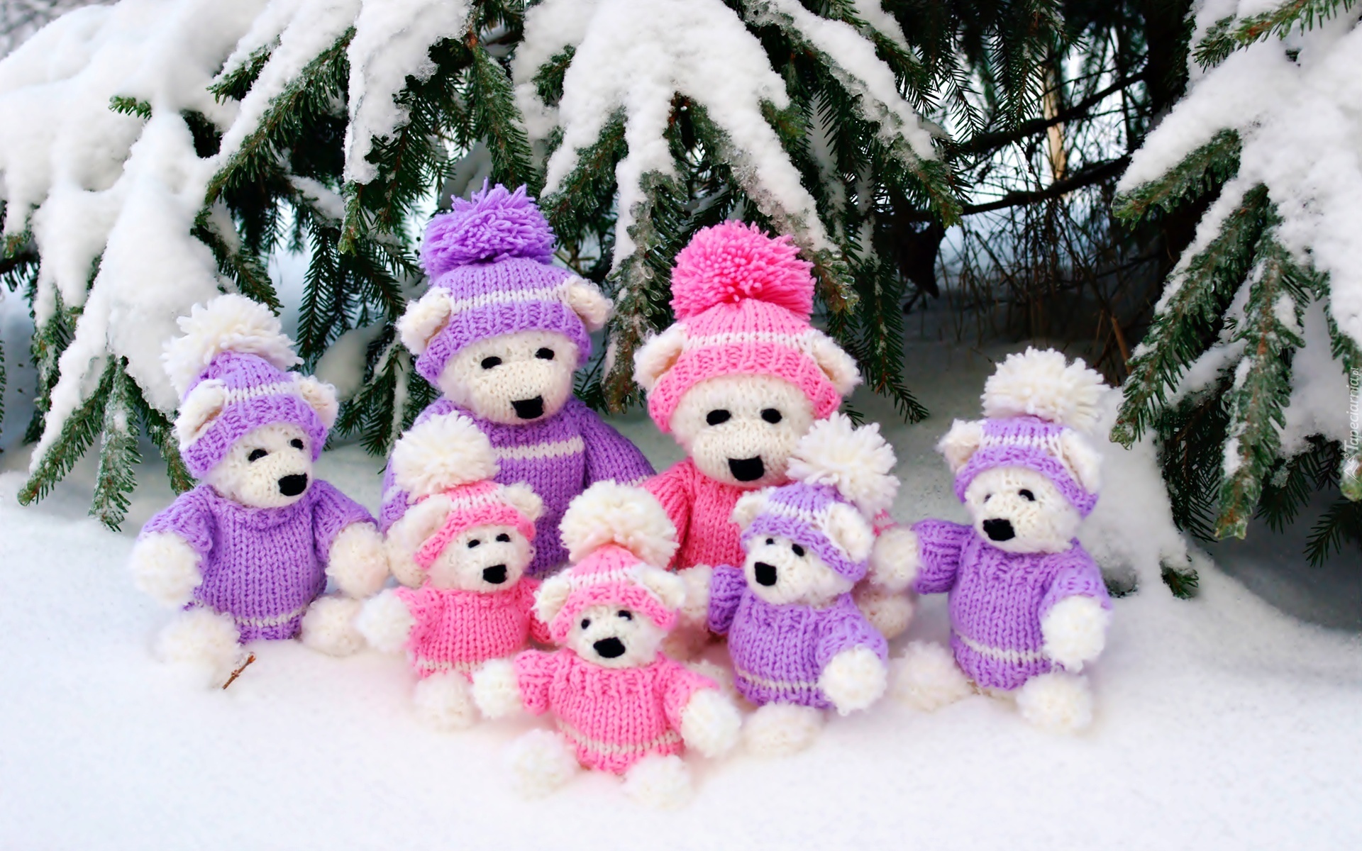 Edytor tapety: Pluszowe, Misie, Zabawki, Świerk, Gałązki, Śnieg