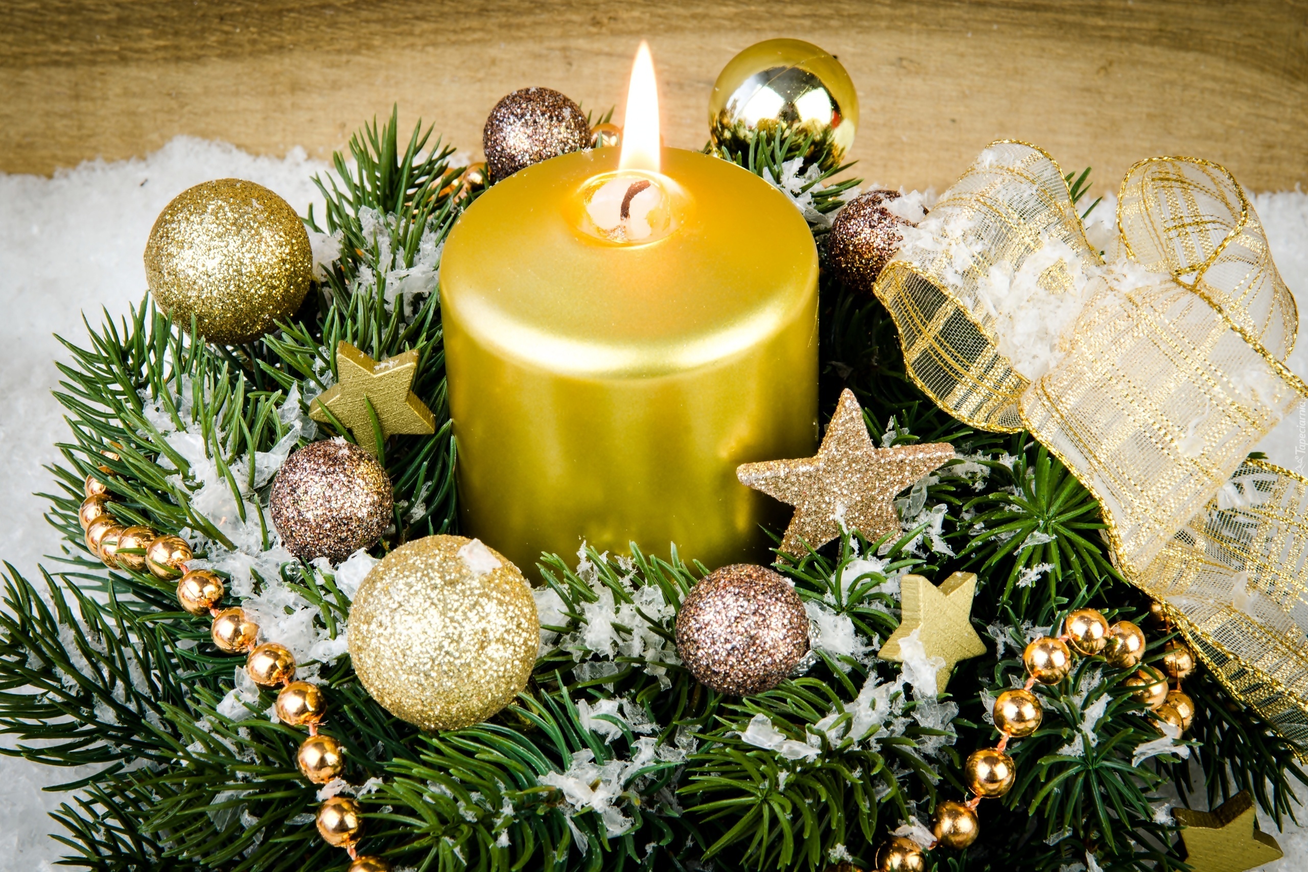 Edytor tapety: Dekoracja, Świąteczna, Złota, Świeczka, Bombki, Stroik