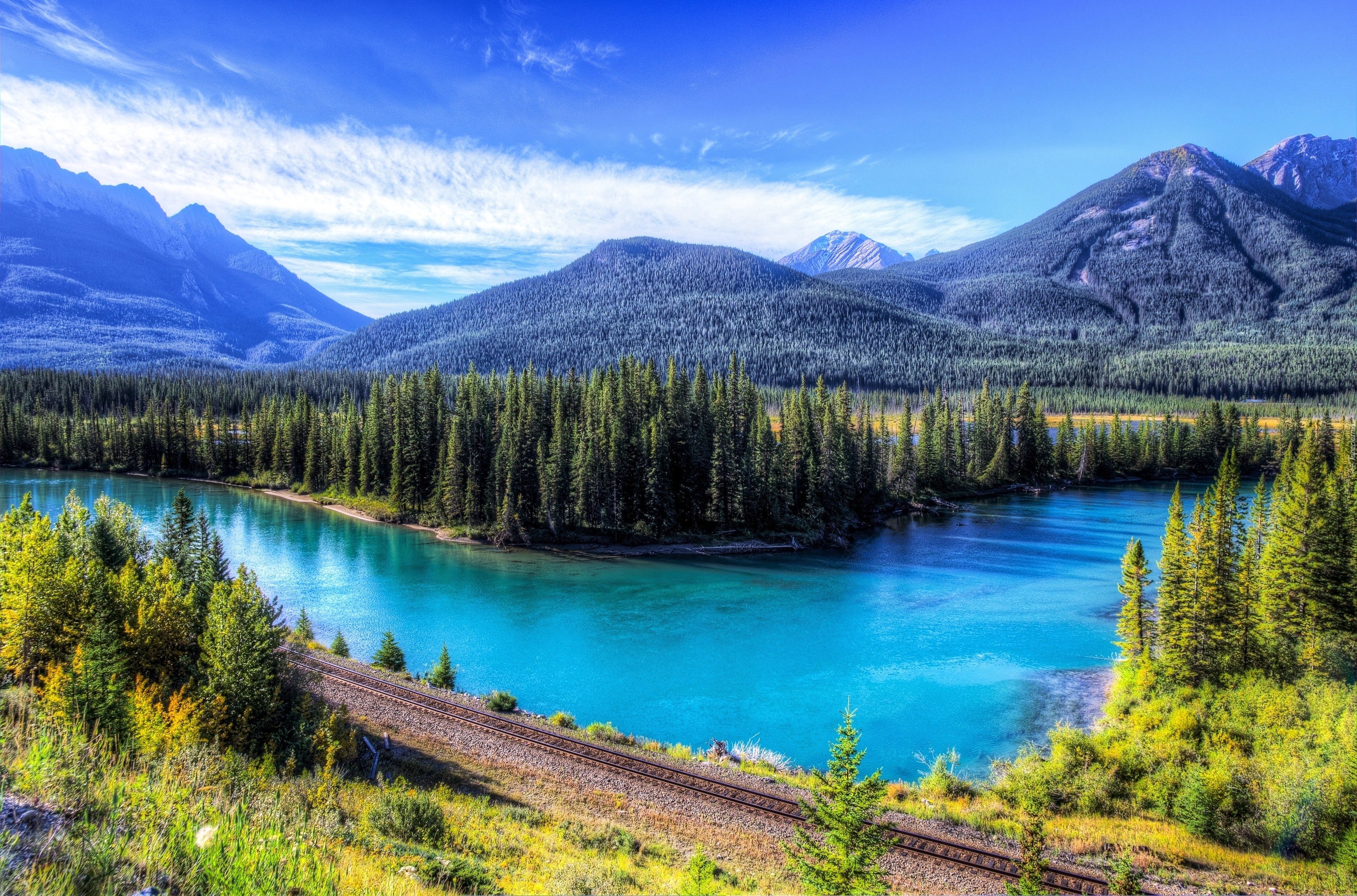 Edytor tapety: Góry, Rzeka, Las, Tory