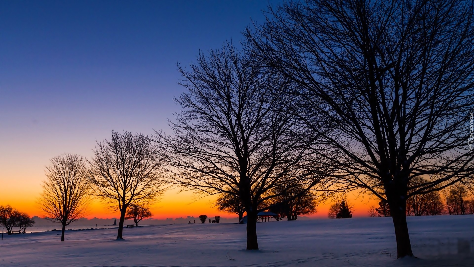 Edytor tapety: Drzewa, Pola, Zachód, Słońca, Zima