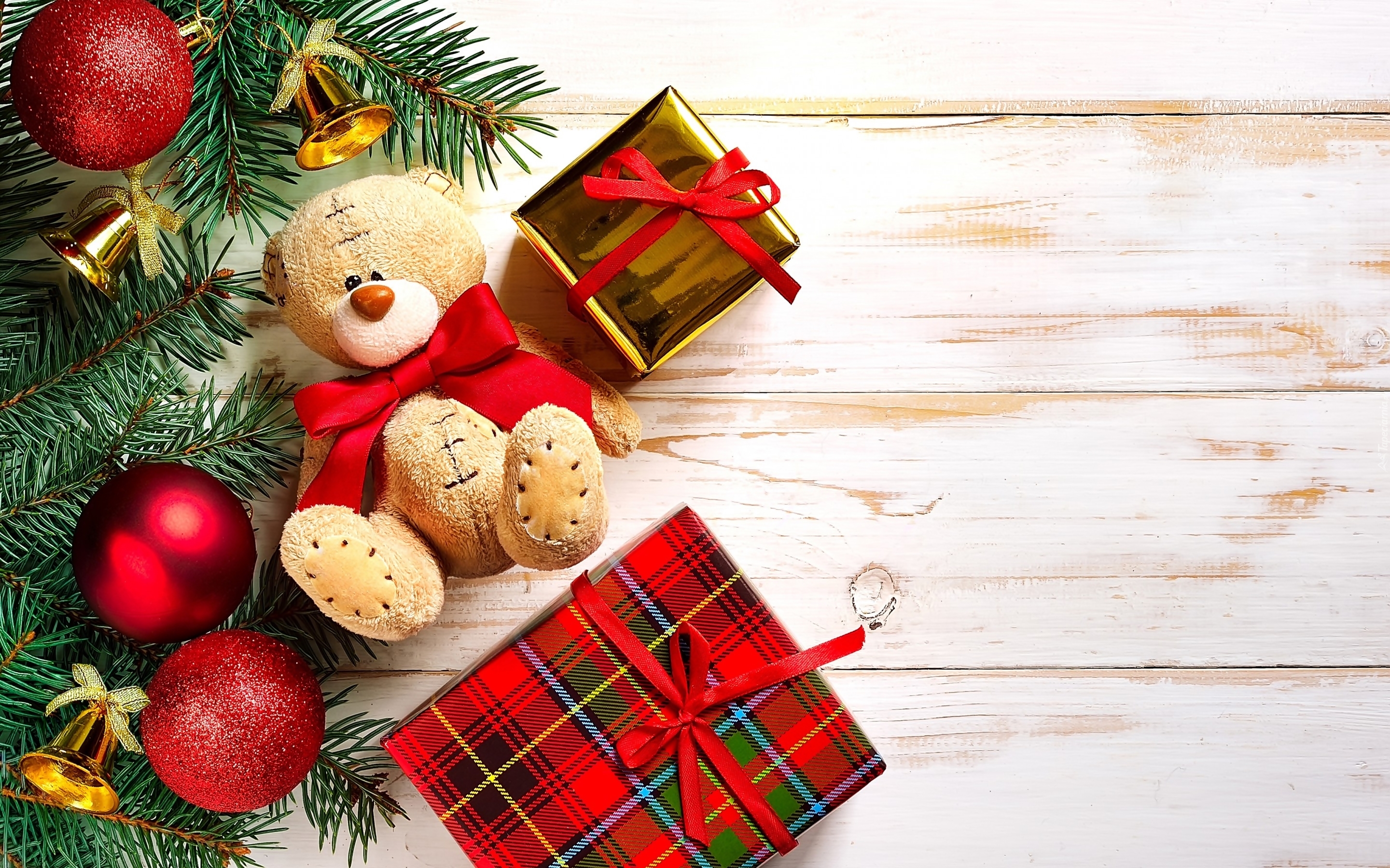 Edytor tapety: Prezenty, Miś, Choinka
