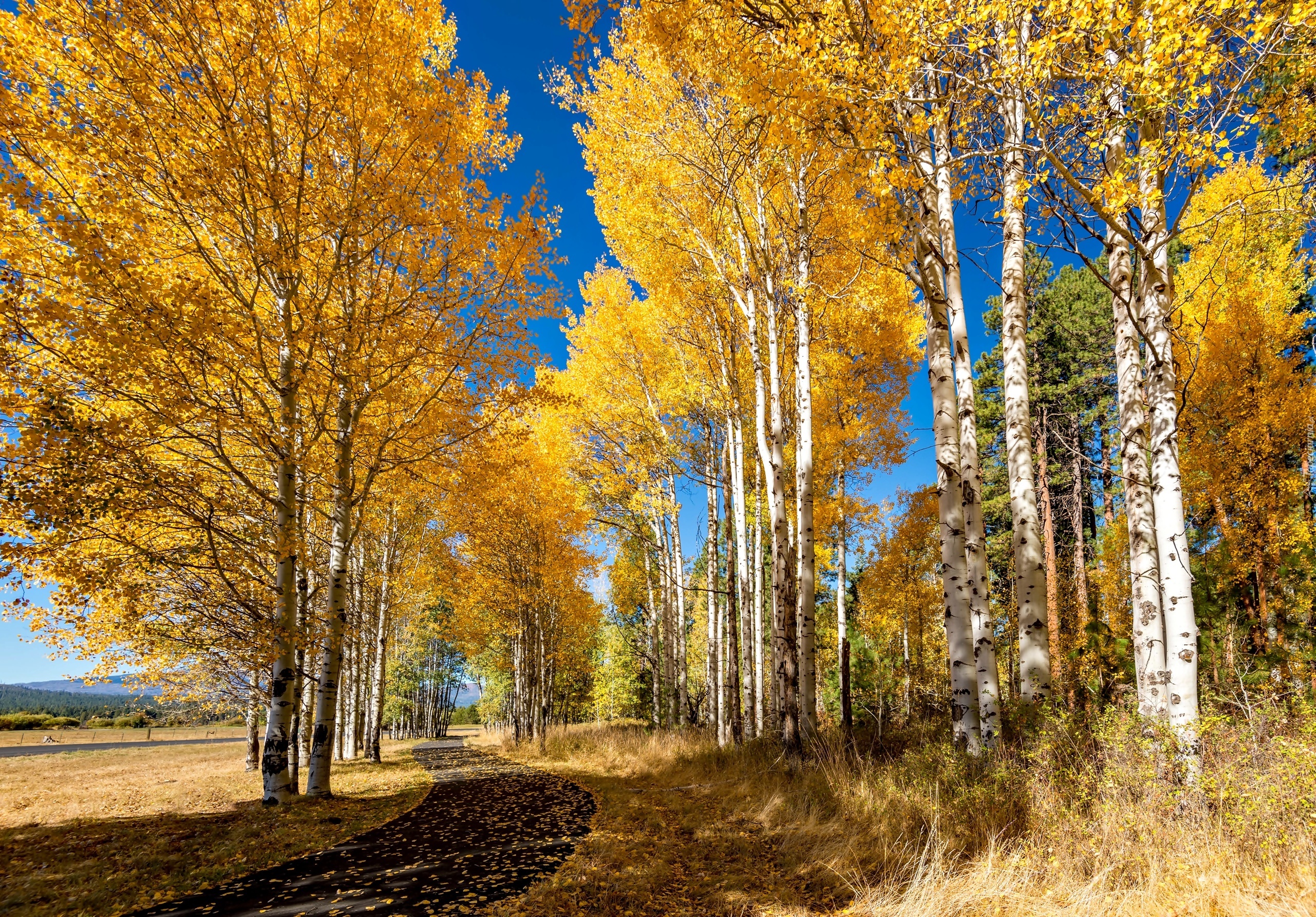Edytor tapety: Jesień, Droga, Brzozy