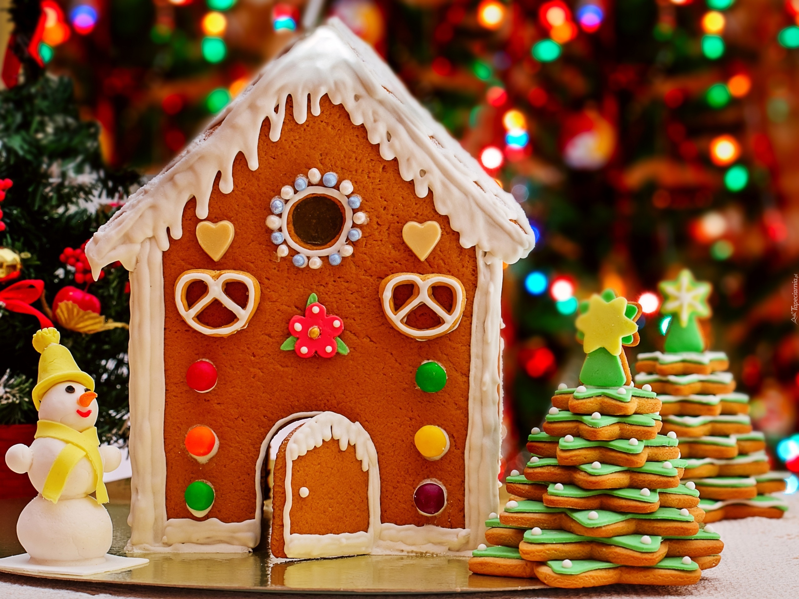 Edytor tapety: Bałwanek, Choinka, Domek