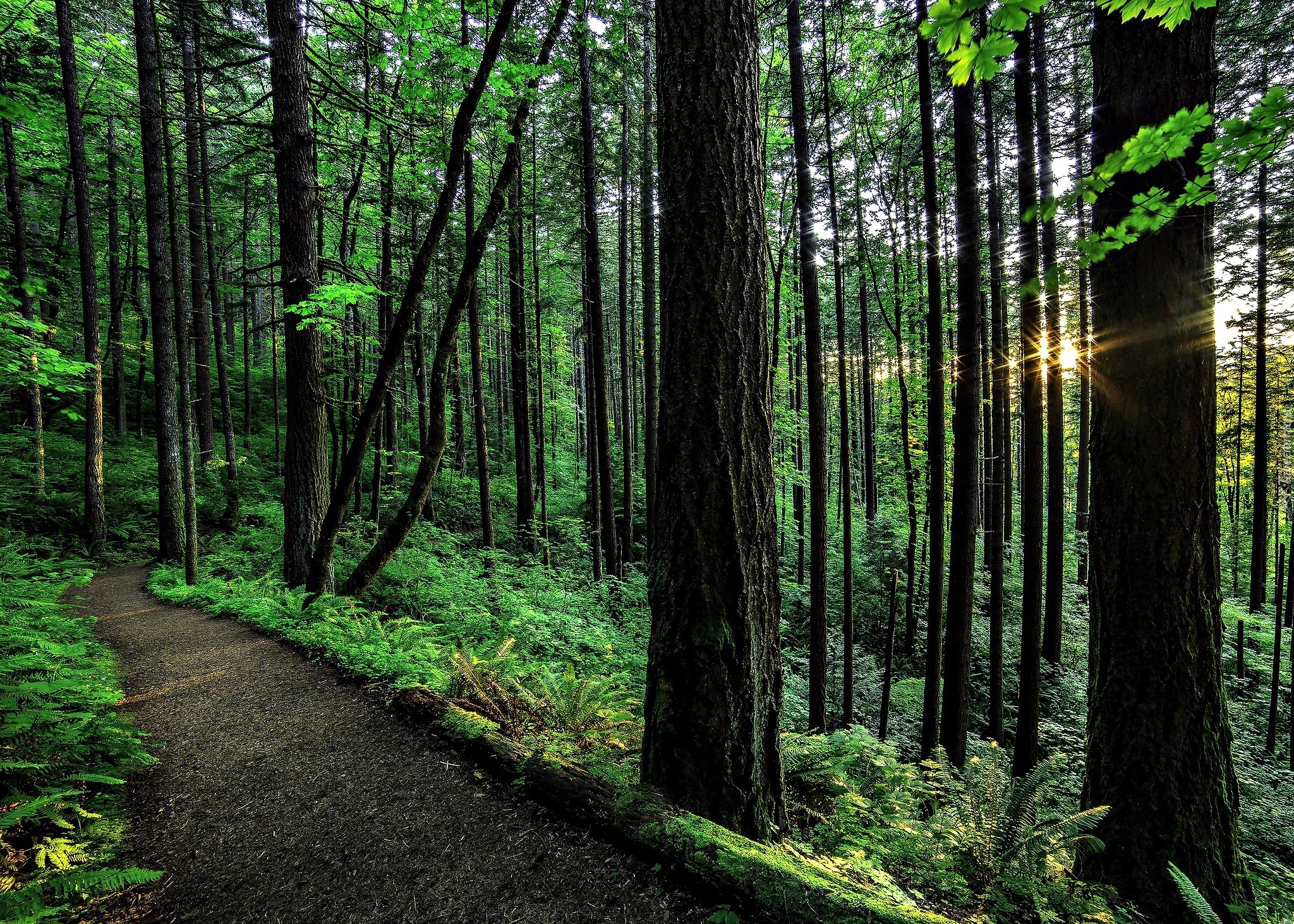 Edytor tapety: Las, Ścieżka, Promienie Słońca