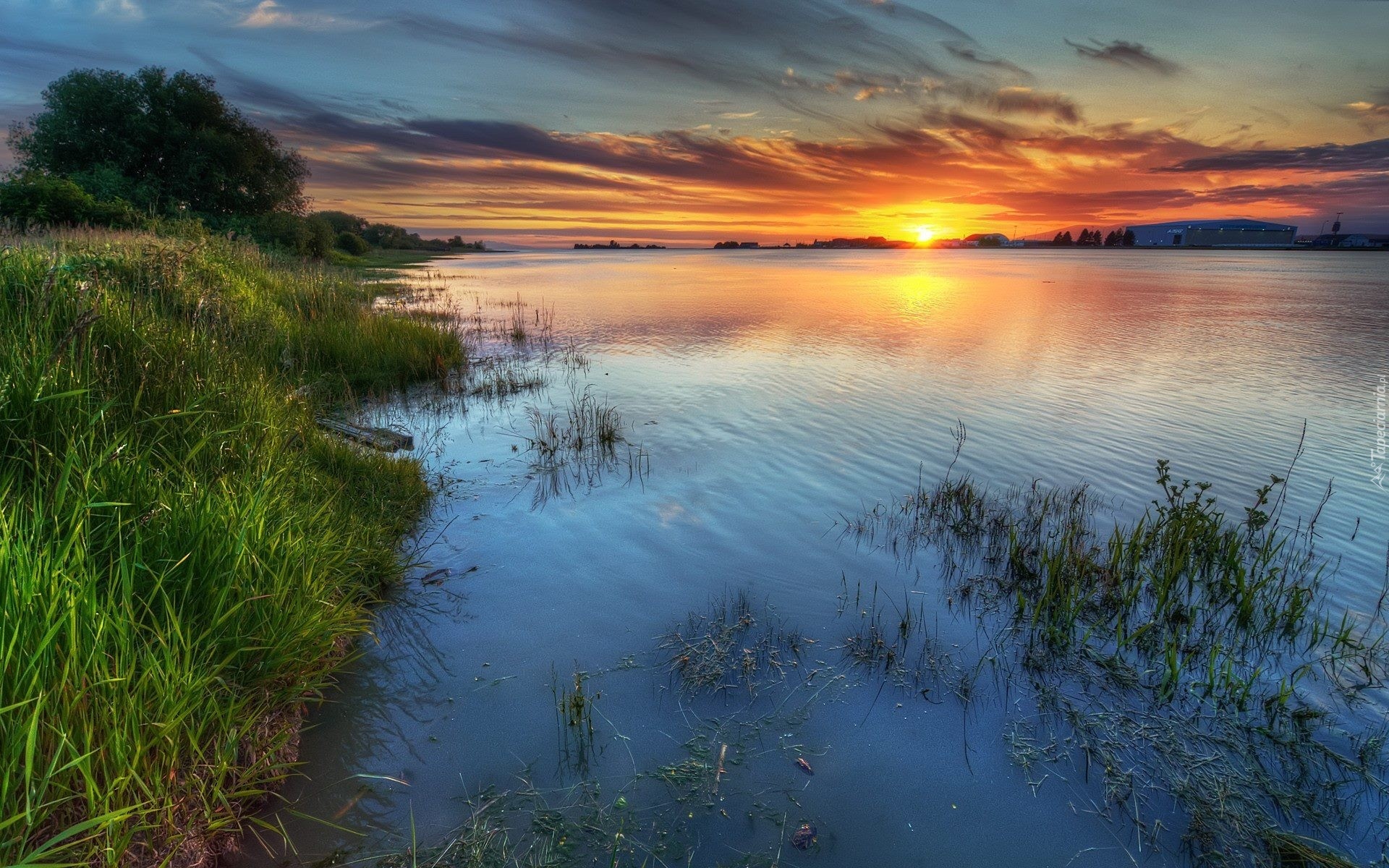 Edytor tapety: Zachód, Słońca, Brzeg, Jeziora, Chmury