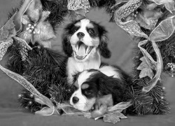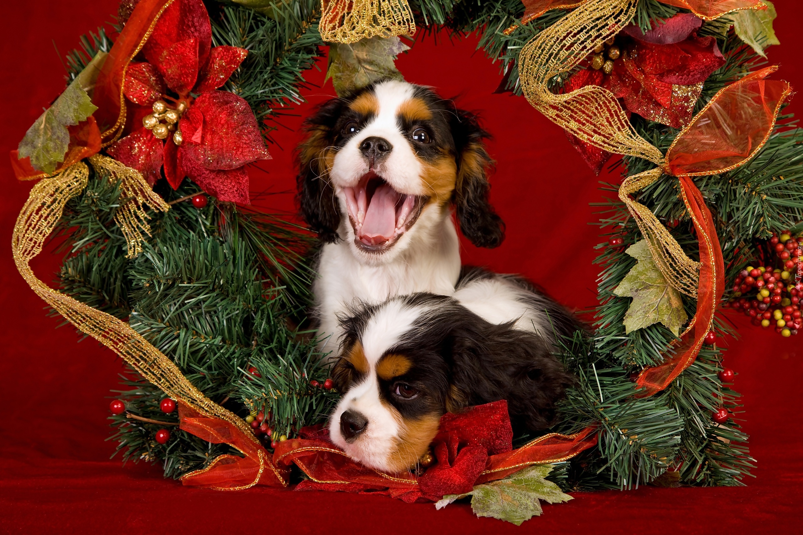 Edytor tapety: Dwa, Pieski, Wstążki, Gałązki