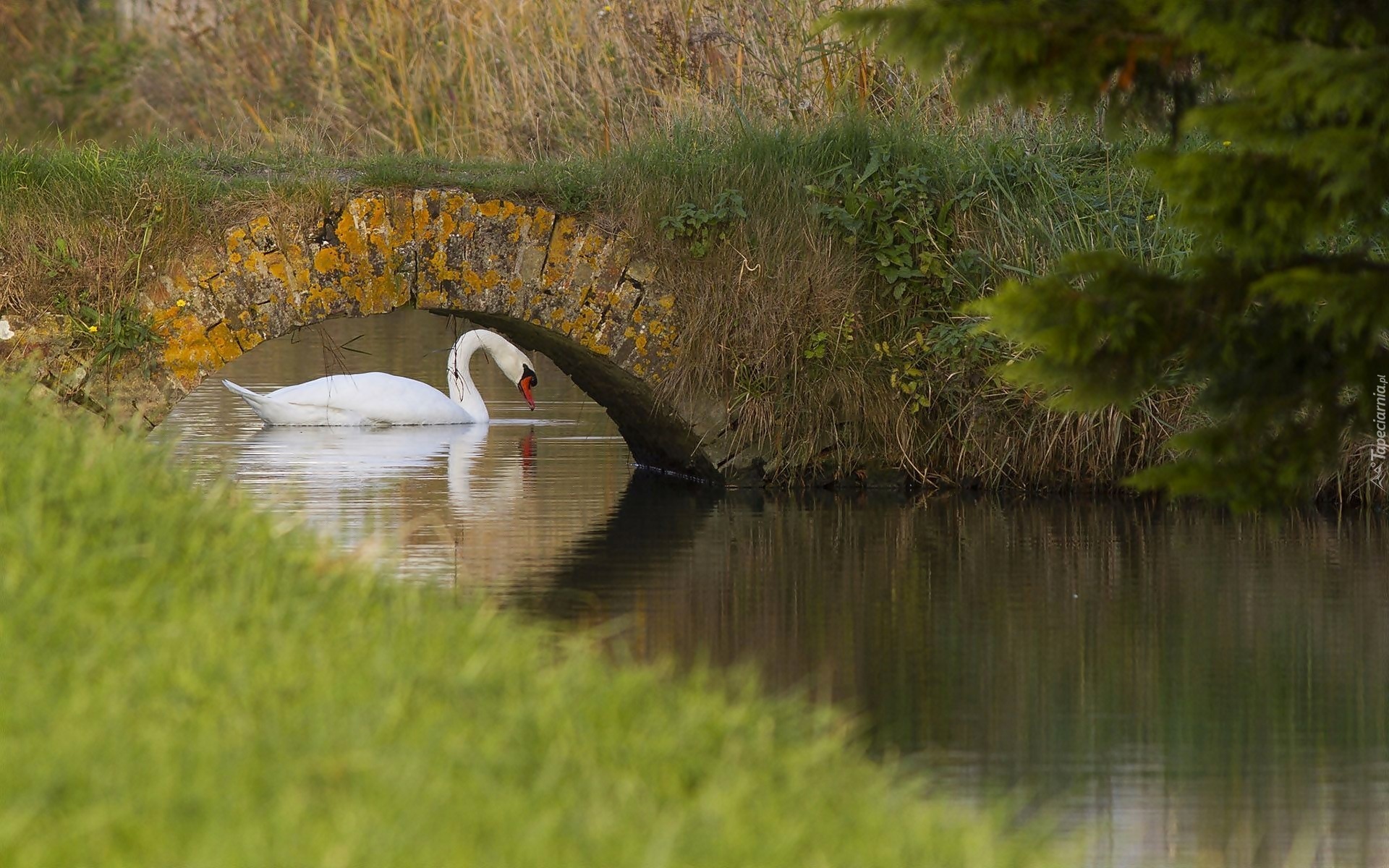 Edytor tapety: Łabędź, Mostek, Rzeczka