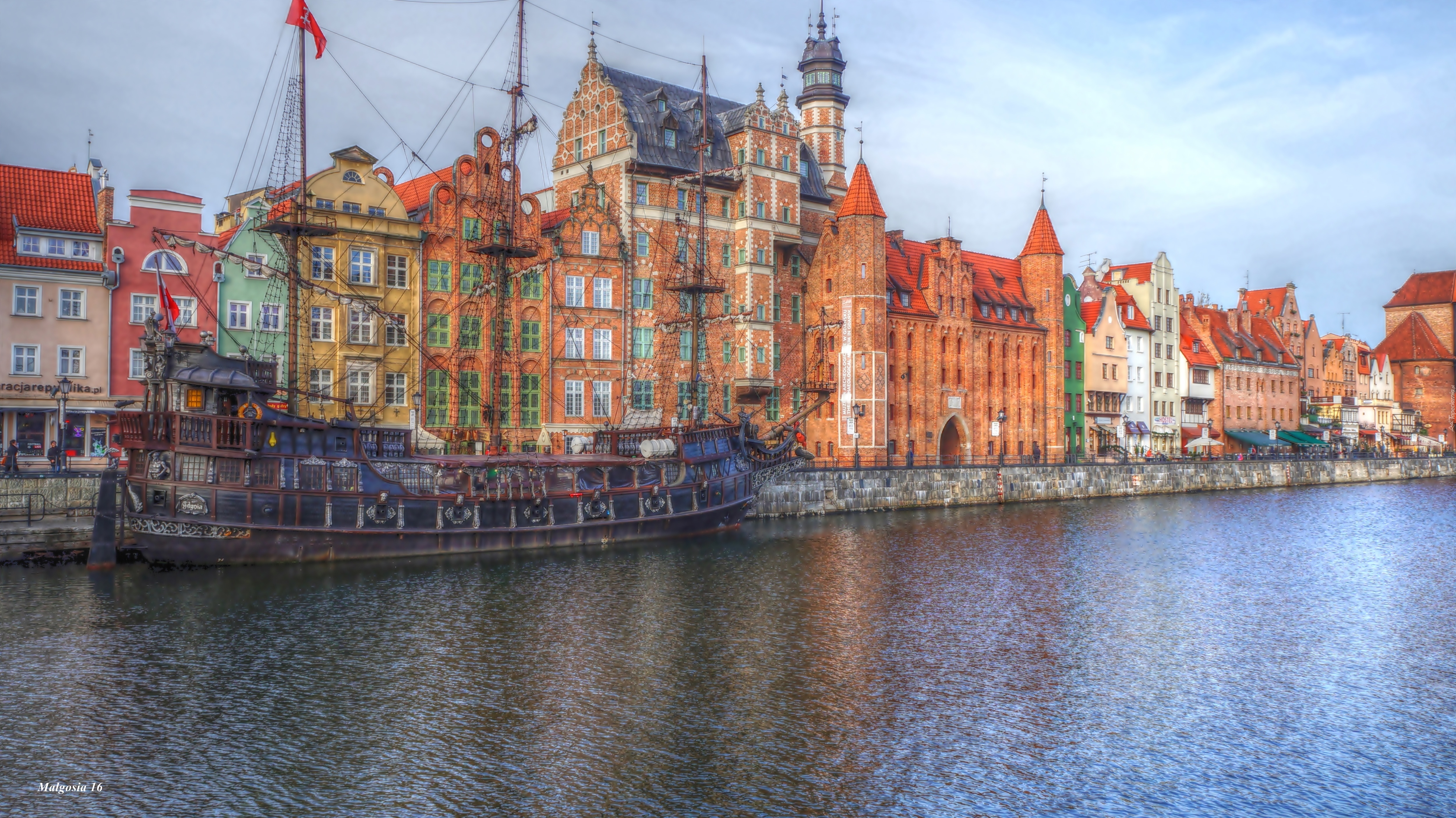 Edytor tapety: Gdańsk, Motława, Rzeka, Kamienice, Zabytki, Łódź, HDR