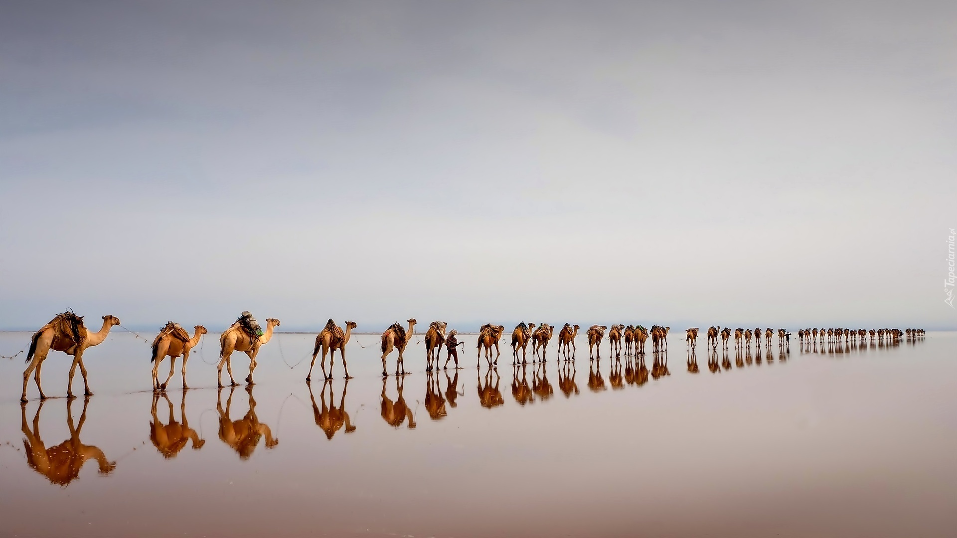 Edytor tapety: Wielbłądy, Karawana, Morze, Piasaek