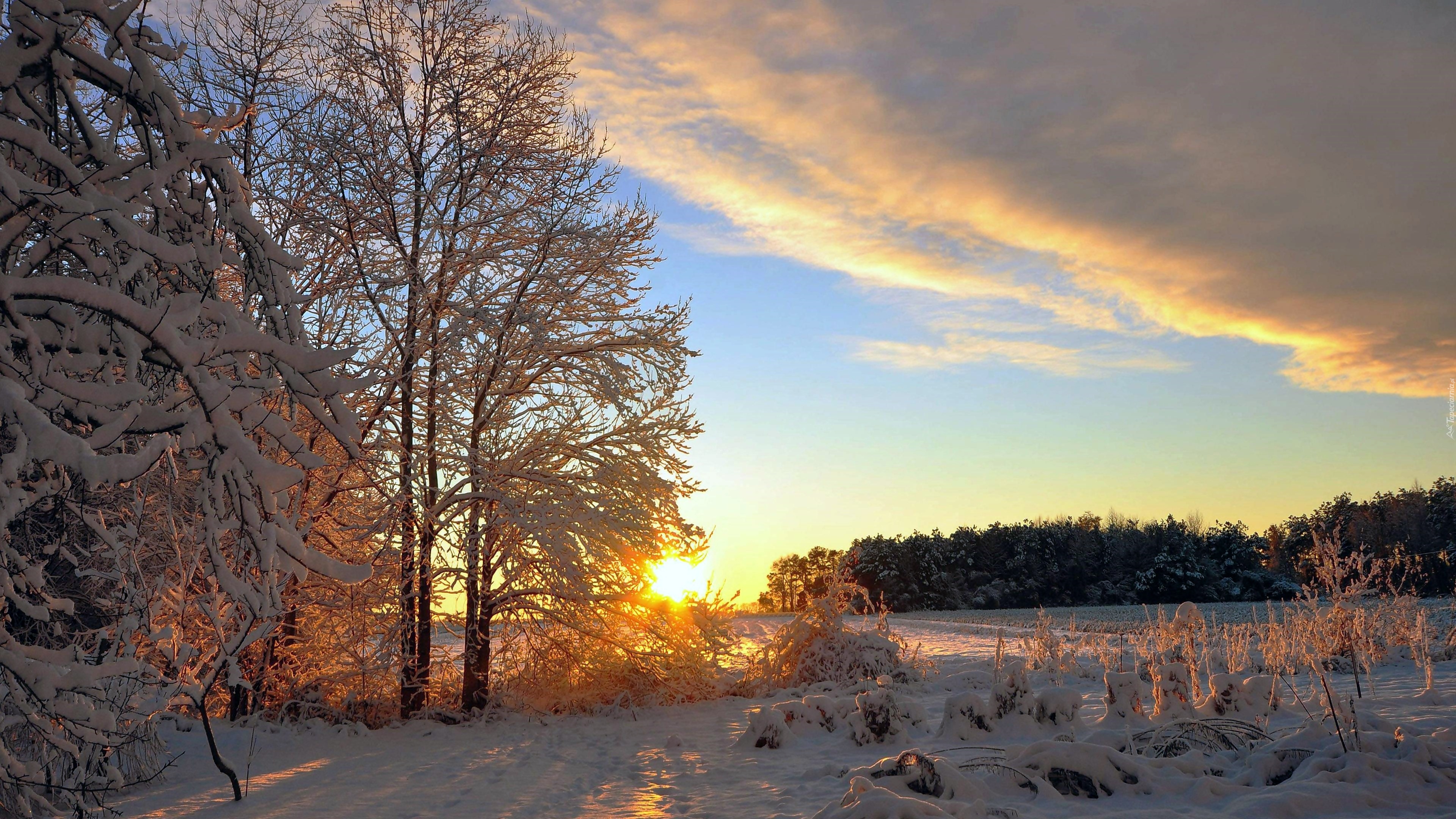 Edytor tapety: Pola, Lasy, Wschód, Słońca, Zima