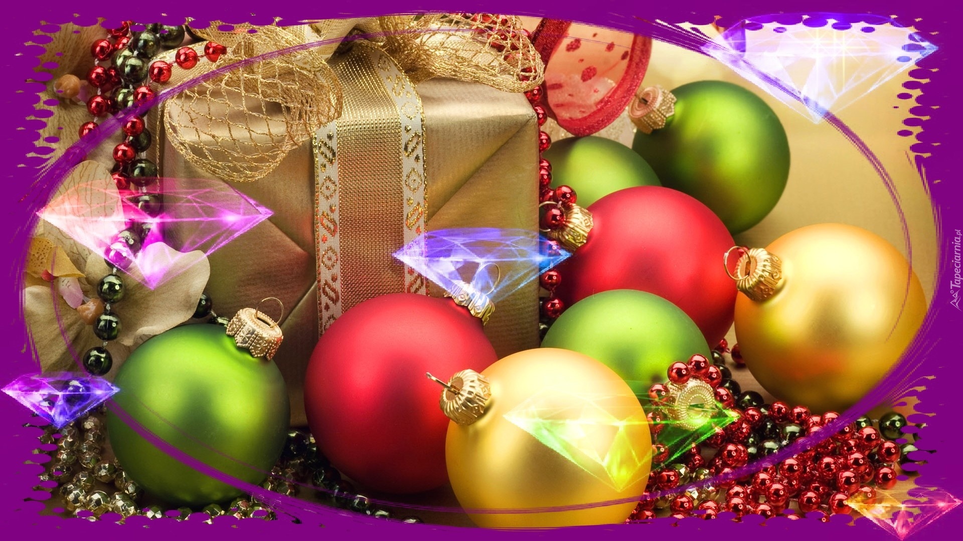 Edytor tapety: Świąteczne, Bombki, Prezent