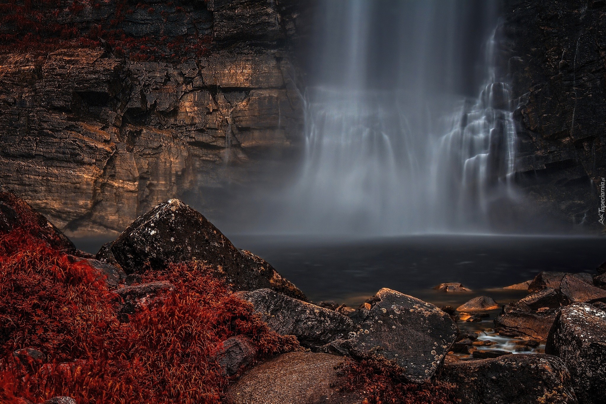 Edytor tapety: Góry, Skały, Wodospad