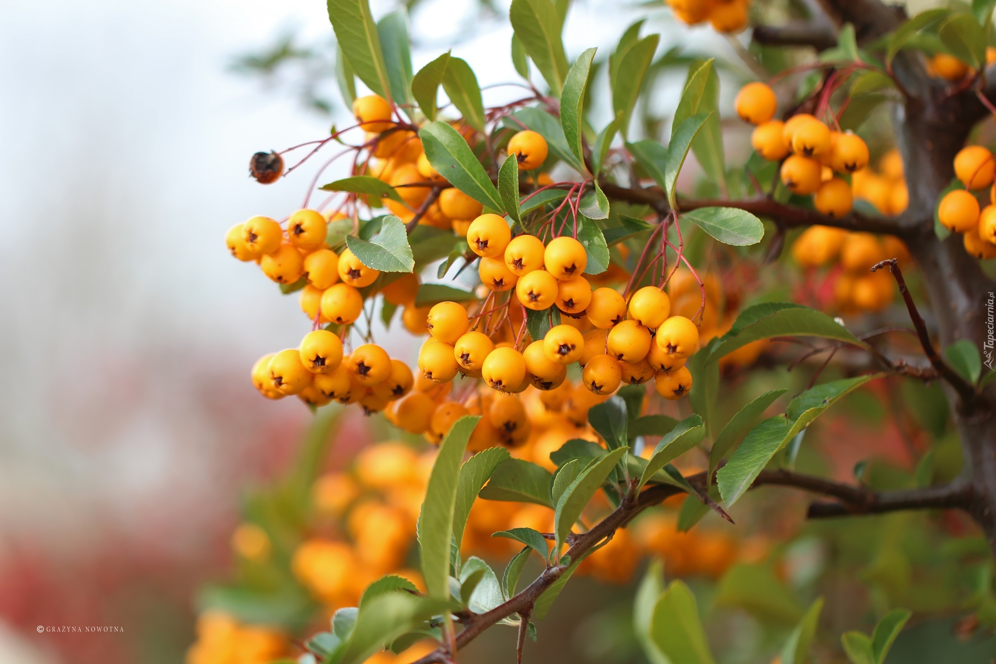 Edytor tapety: Ognik Szkarłatny, Krzew, Żółte, Owoce