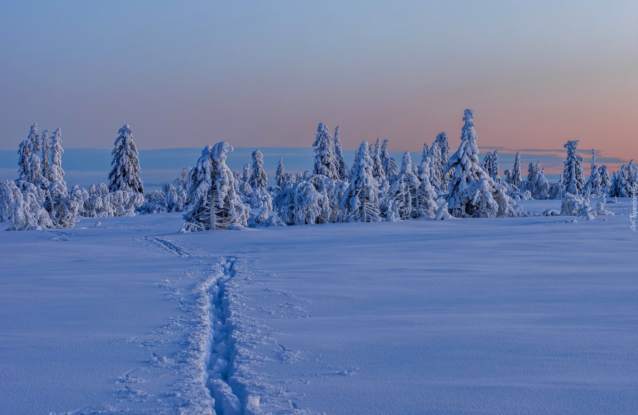 Edytor tapety: Zima, Ośnieżone, Drzewa, Śnieg, Wydeptana,Ścieżka