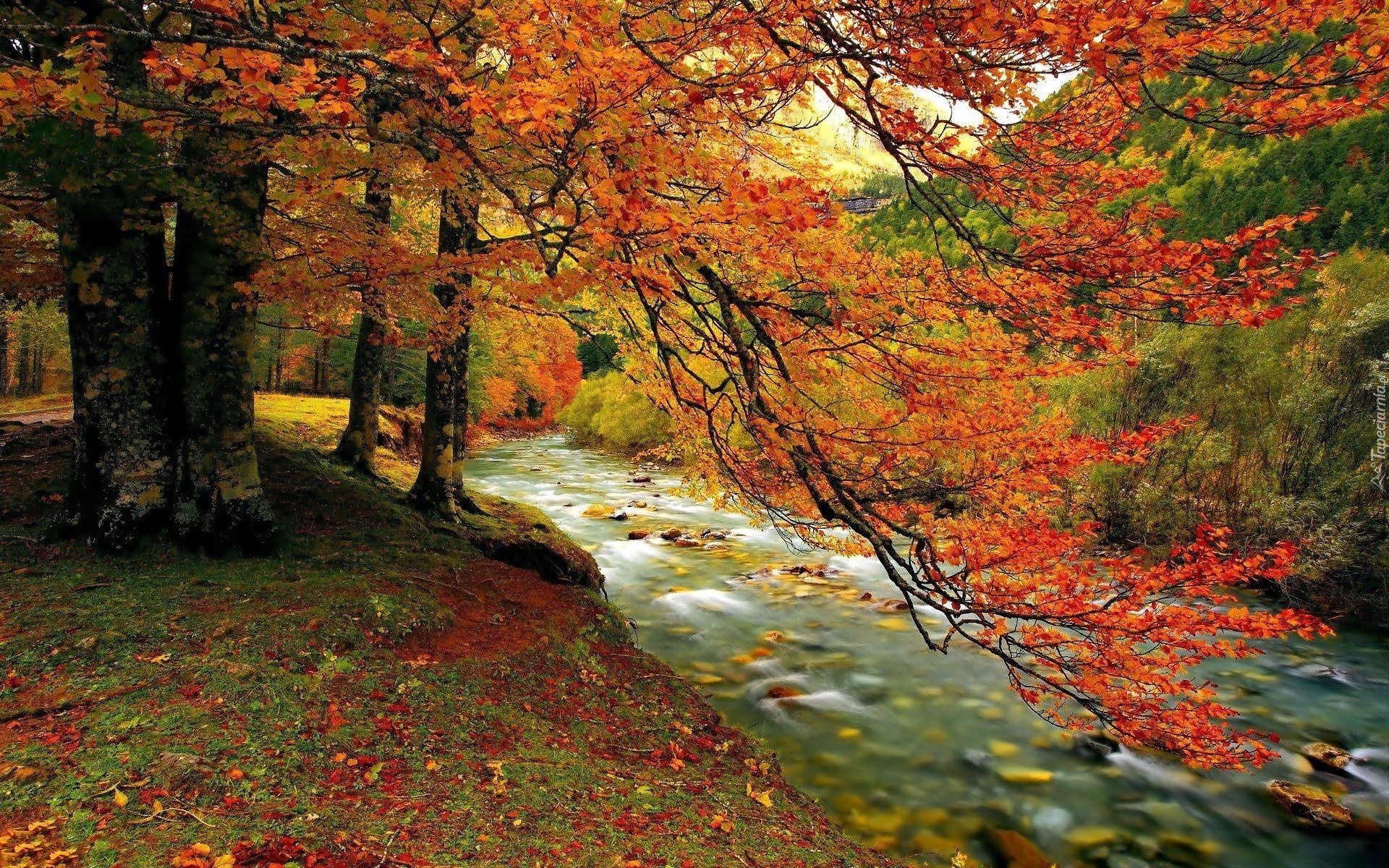 Edytor tapety: Potok, Las, Góry, Jesień