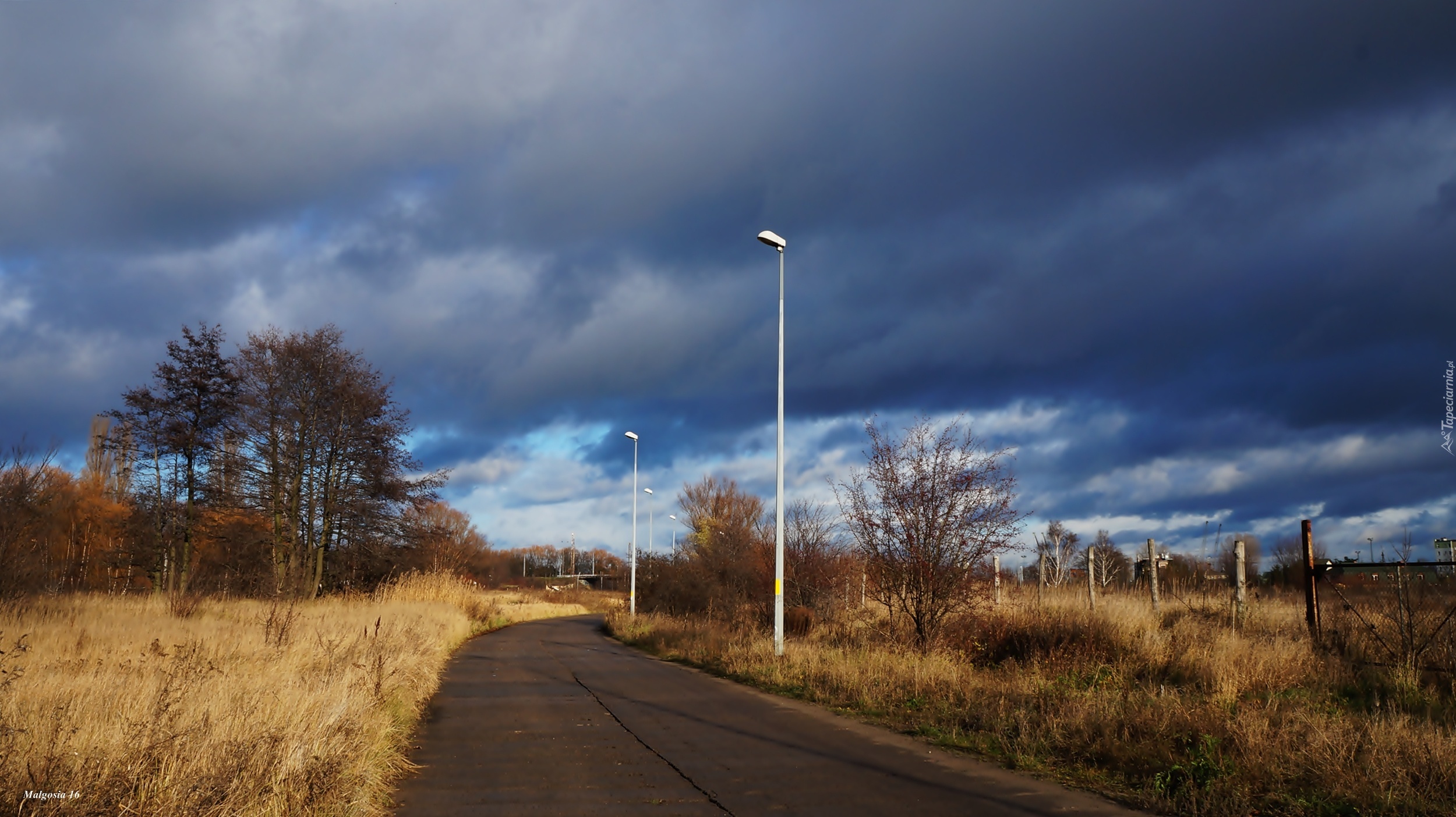 Edytor tapety: Droga, Drzewa, Niebo, Chmury