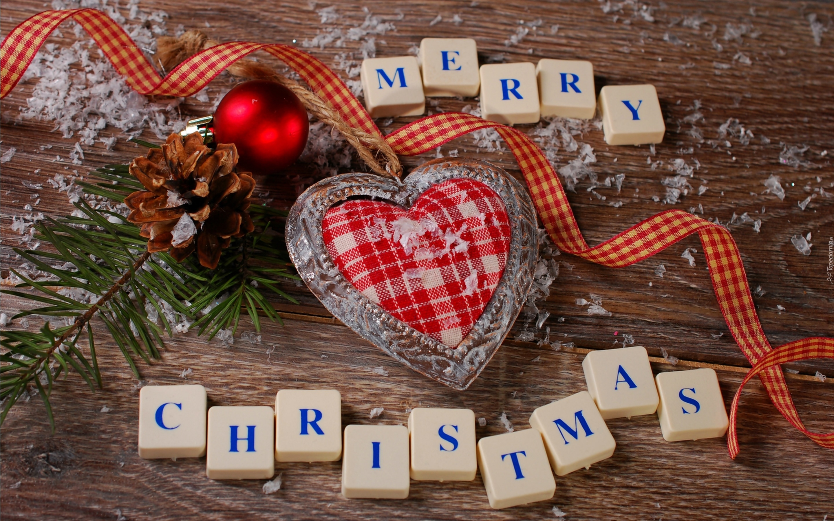 Edytor tapety: Serce, Bombki, Gałązka, Szyszka, Kompozycja, Świąteczna