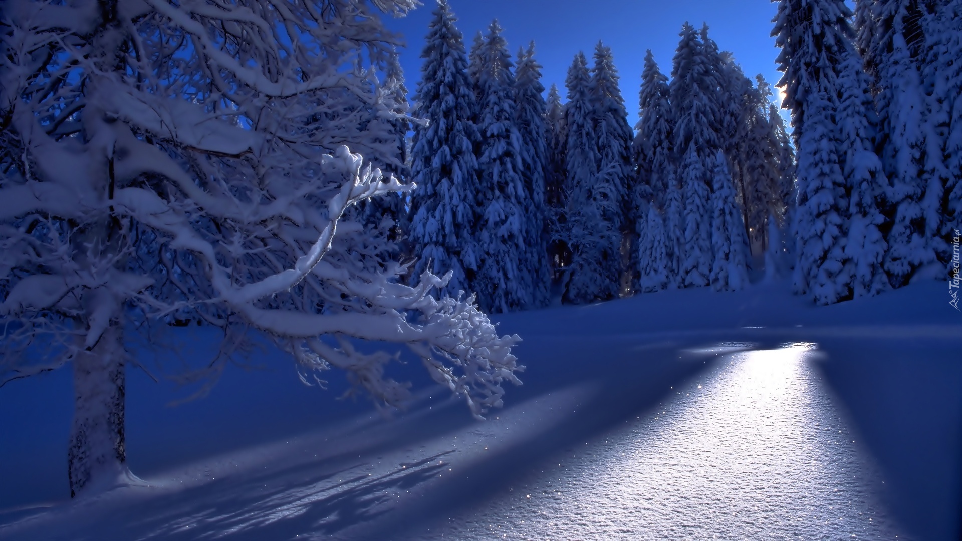 Edytor tapety: Zima, Przebijająca Światło, Drzewa
