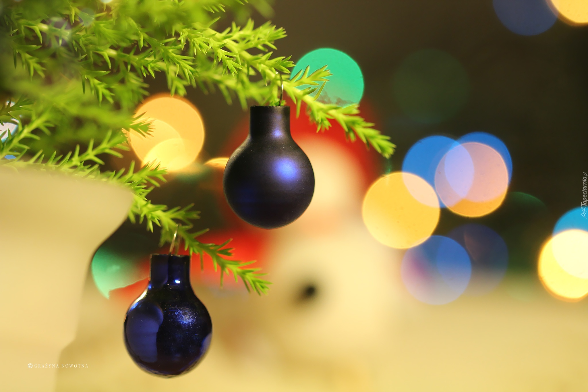 Edytor tapety: Bombki, Gałązki, Święta, Boże Narodzenie, Bokeh