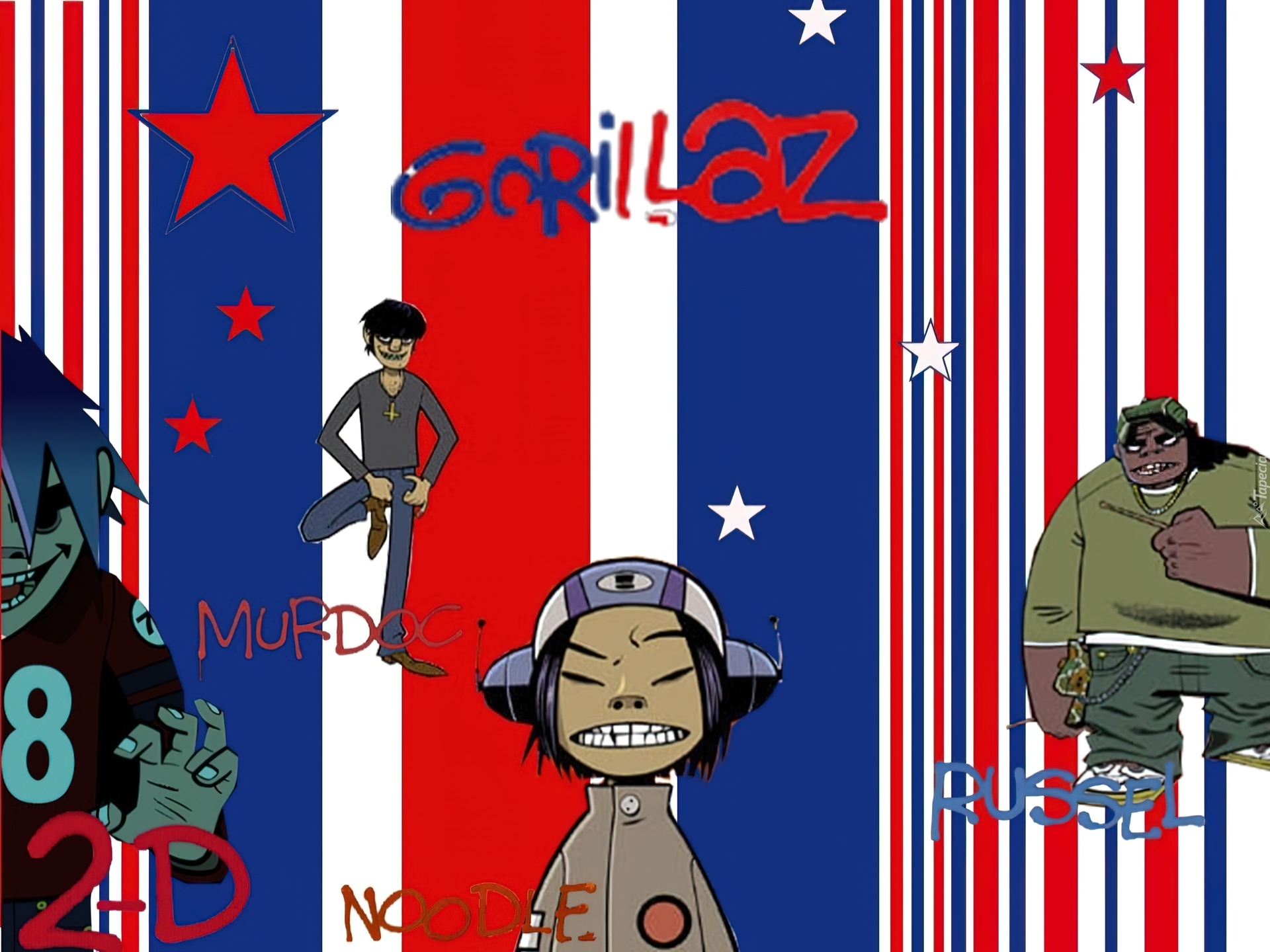 Edytor tapety: Gorillaz,gwiazdki , kask ,ludziki