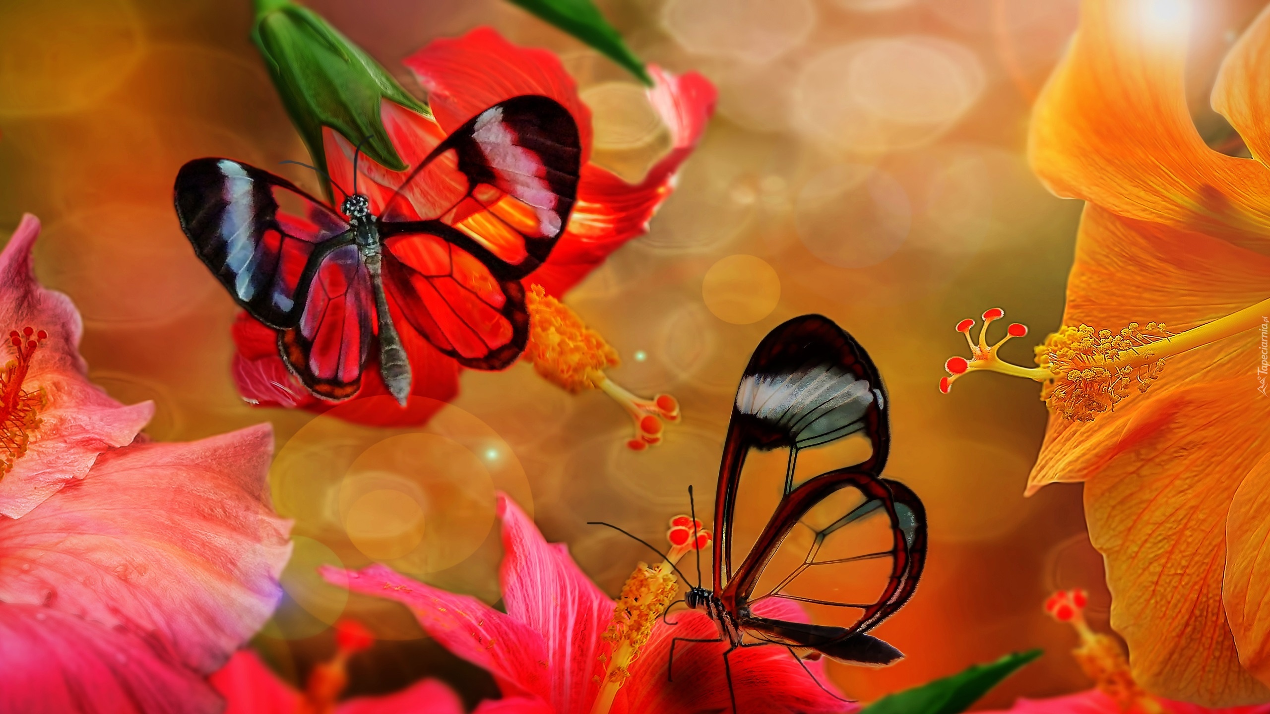 Edytor tapety: Motyle, Hibiskusy