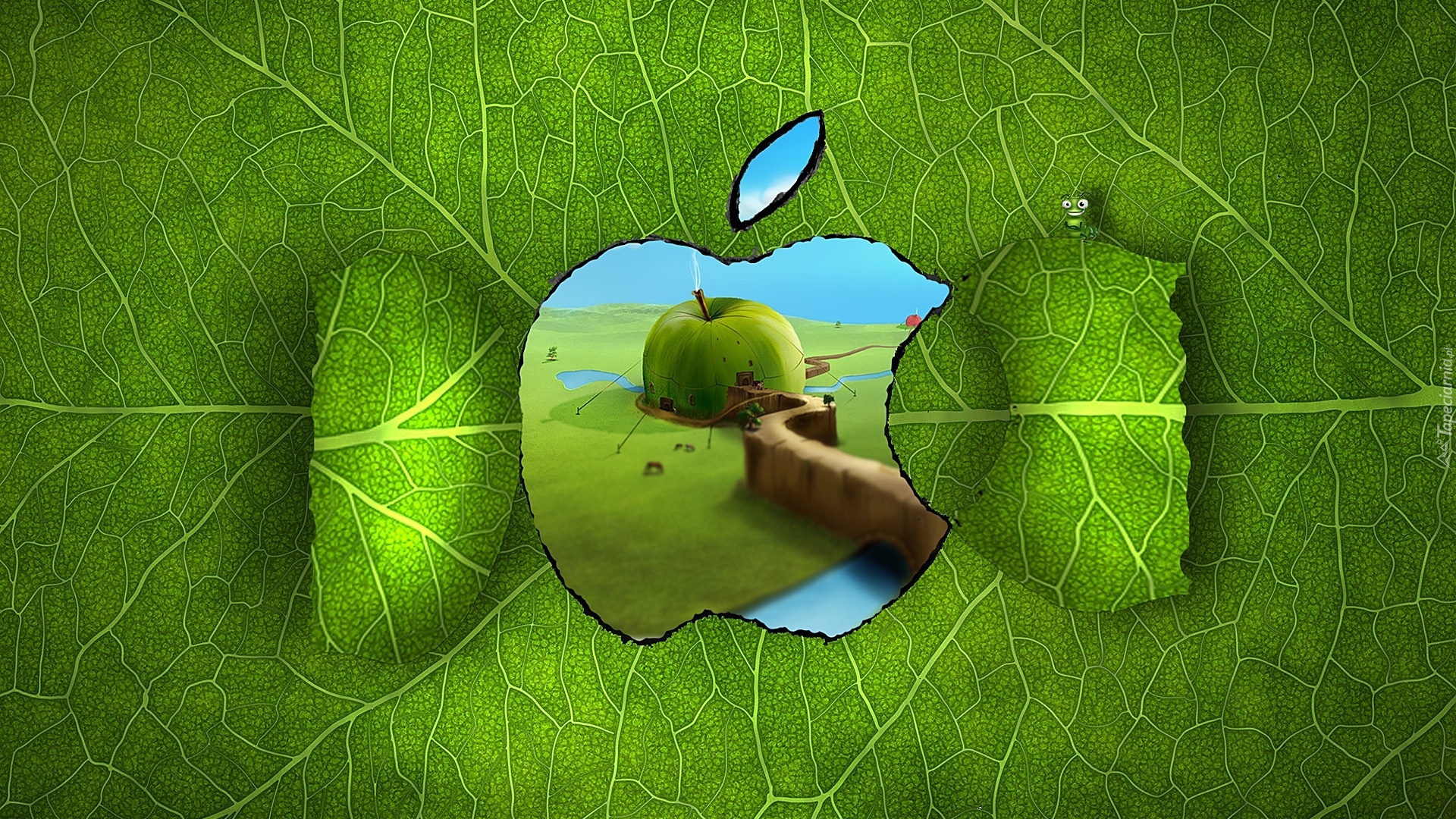 Edytor tapety: Zielone, Logo, Apple, 3D