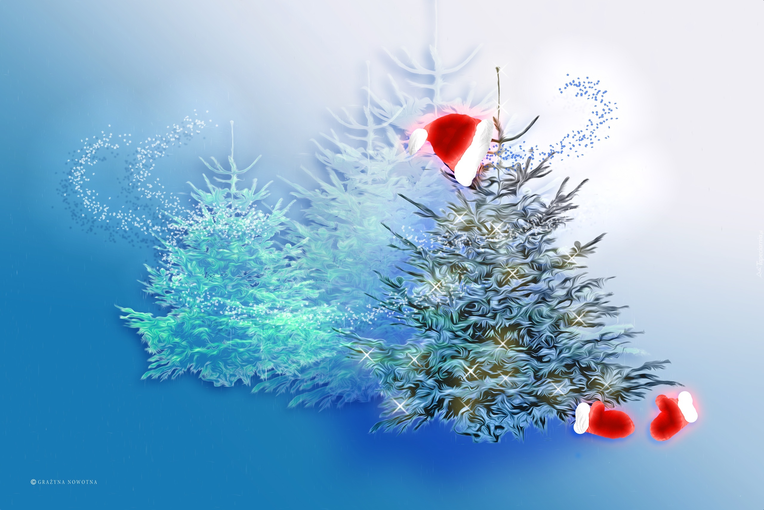 Edytor tapety: Choinki, Niebieskie, Czapeczka, Rękawiczki, Grafika