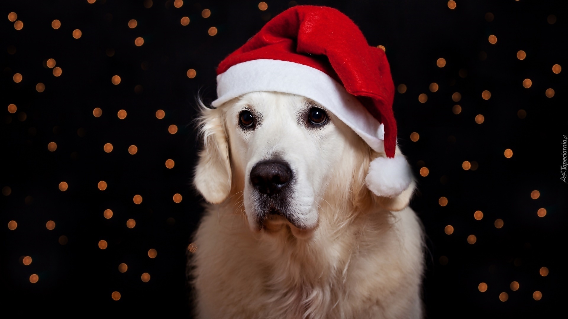 Edytor tapety: Świąteczny, Golden Retriever, Czapeczka