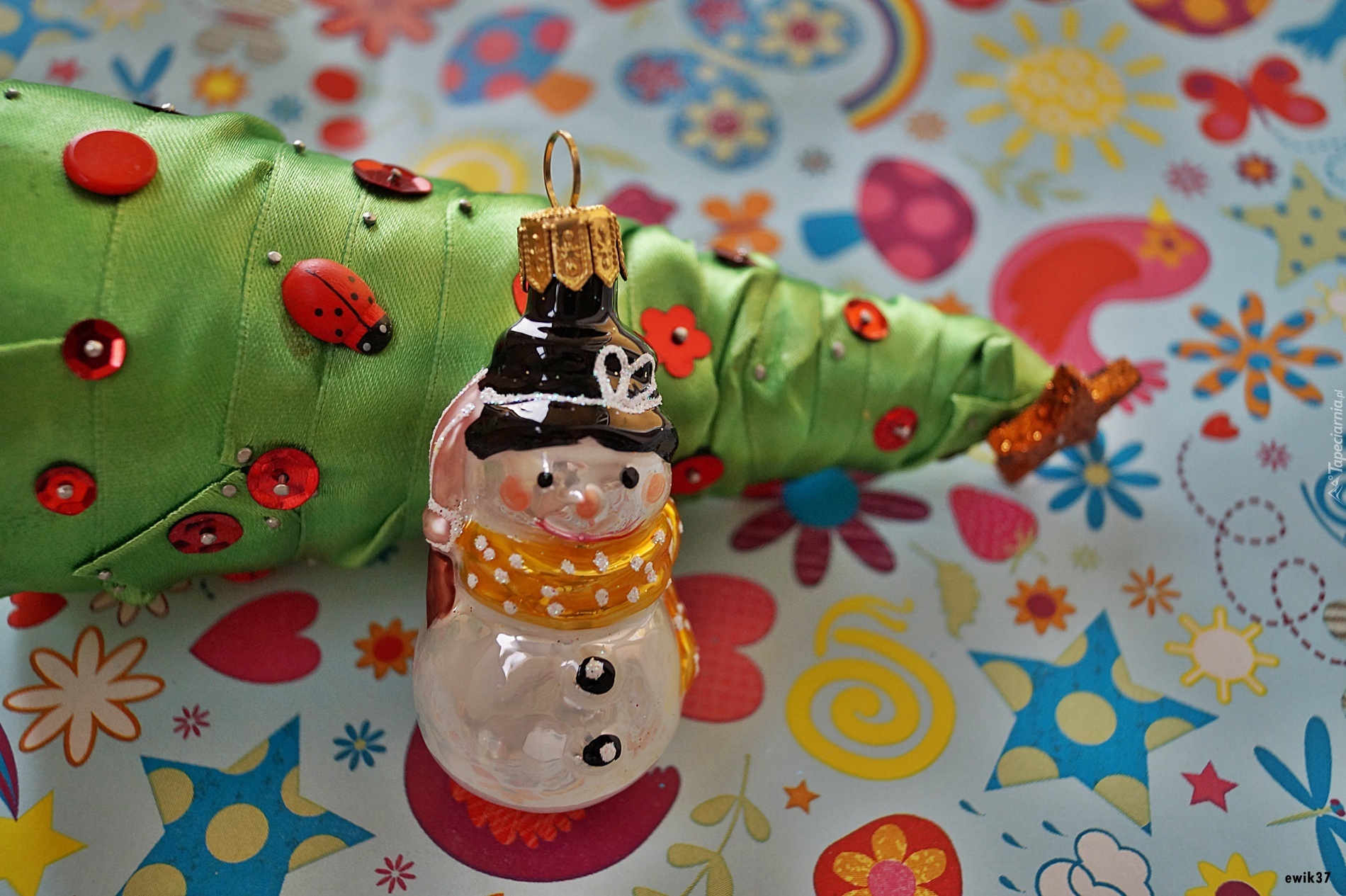 Edytor tapety: Przewrócona, Choinka, Bałwanek
