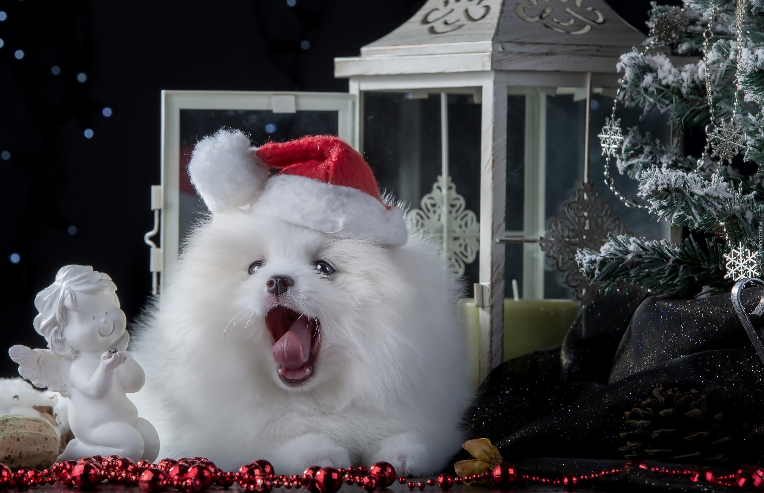 Edytor tapety: Piesek, Szpic, Czapka, Mikołaja