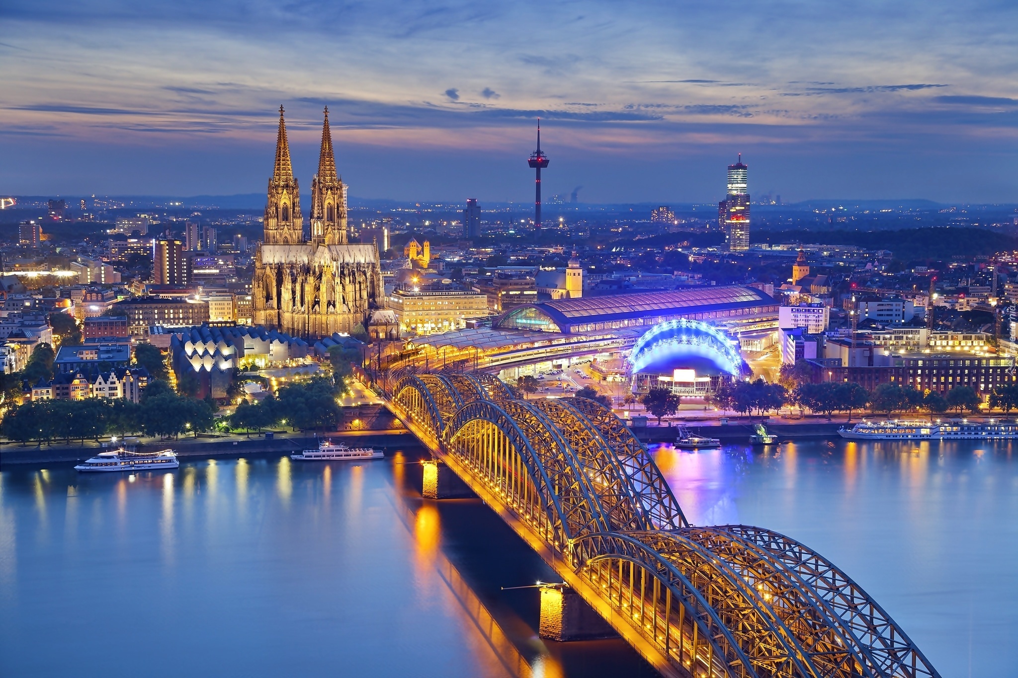 Edytor tapety: Niemcy, Kolonia, Miasto, Nocą, Most, Rzeka