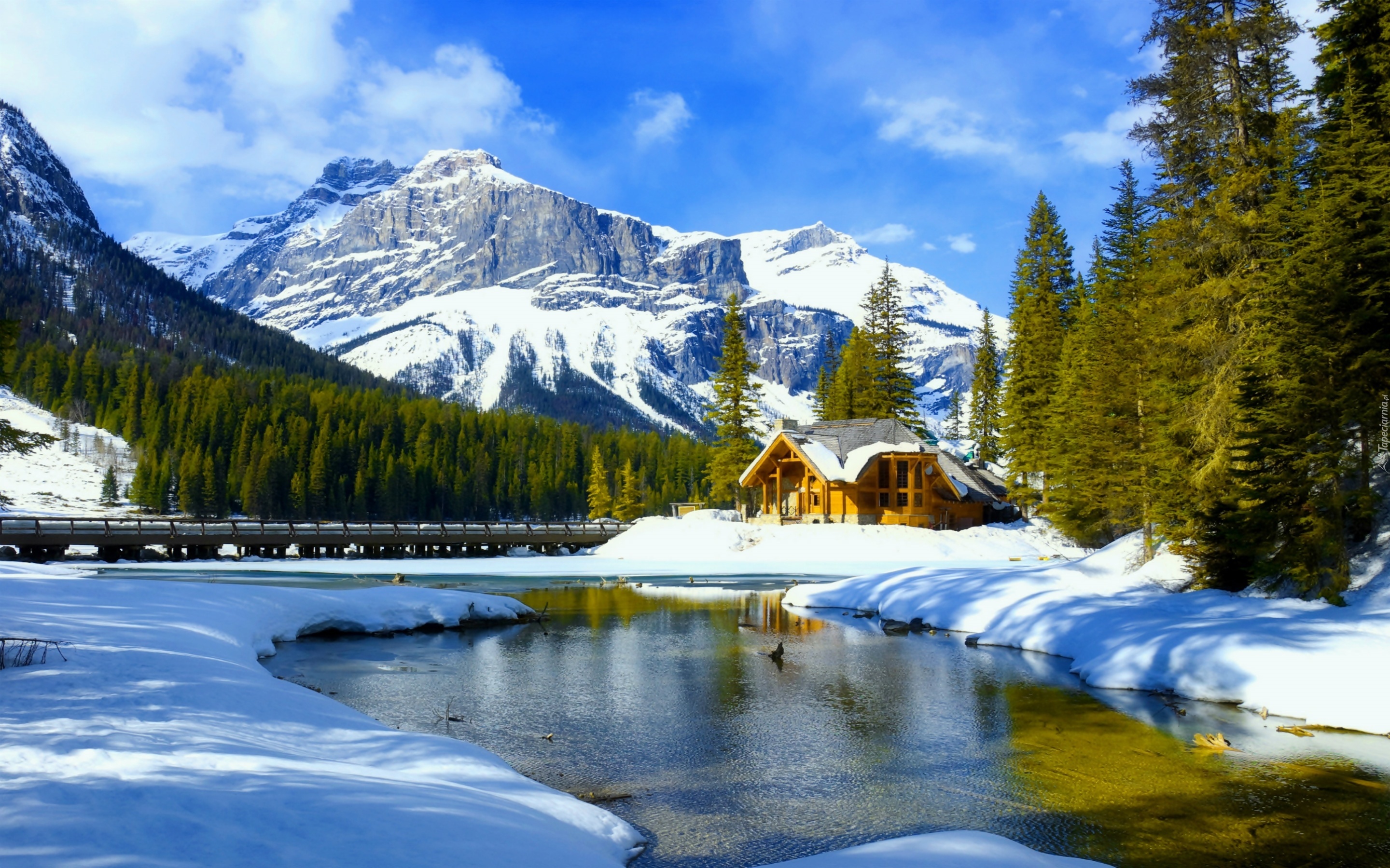 Edytor tapety: Szmadagdowe, Jezioro, Dom, Lasy, Góry, Zima, Kanada