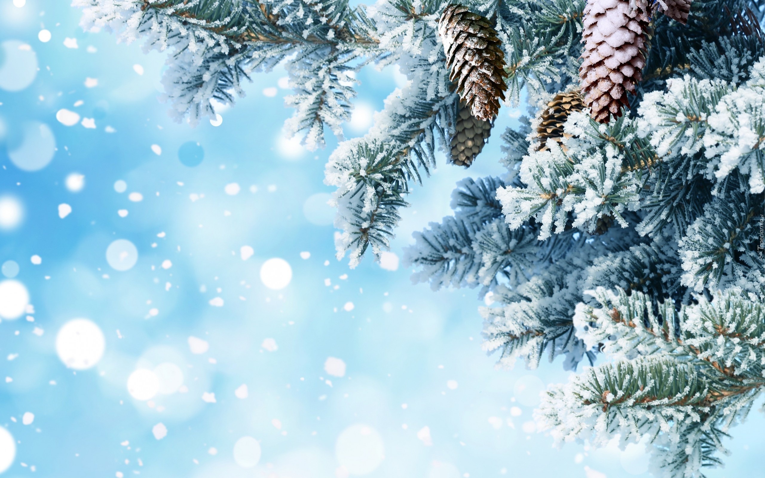 Edytor tapety: Gałązki, Iglak, Choinka, Szyszki, Śnieg, Świątecznie