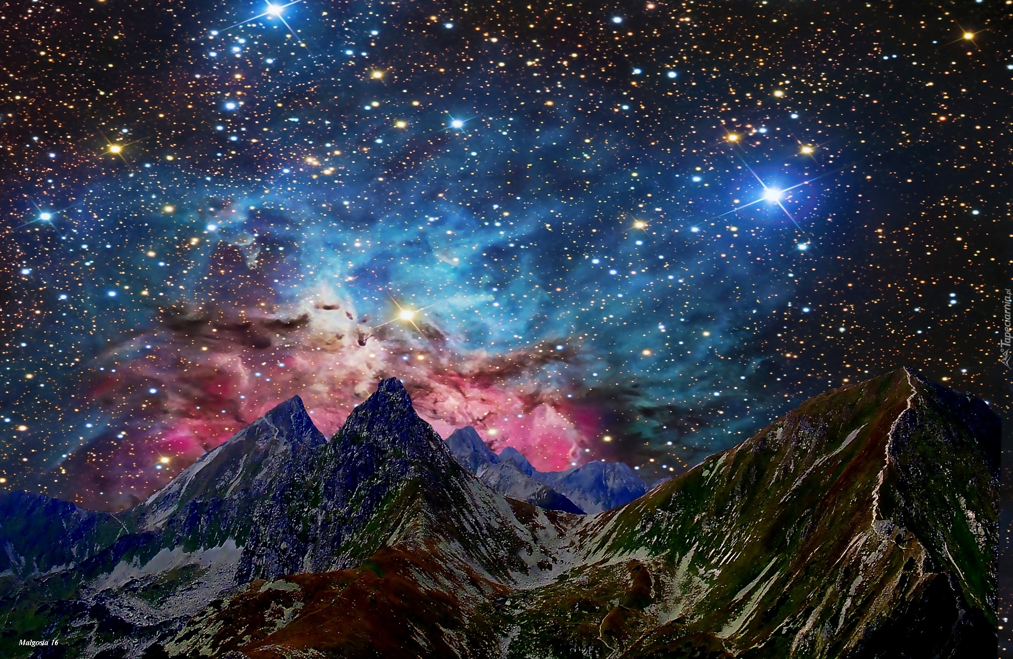 Edytor tapety: Góry, Gwiazdy, Galaktyka, Kosmos