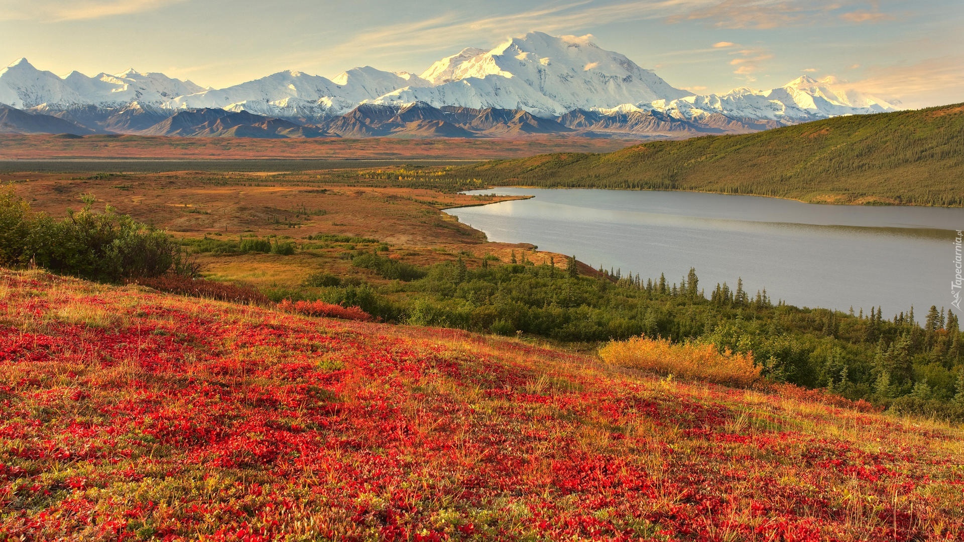 Edytor tapety: Ośnieżone, Góry, Lasy, Łąki, Jezioro