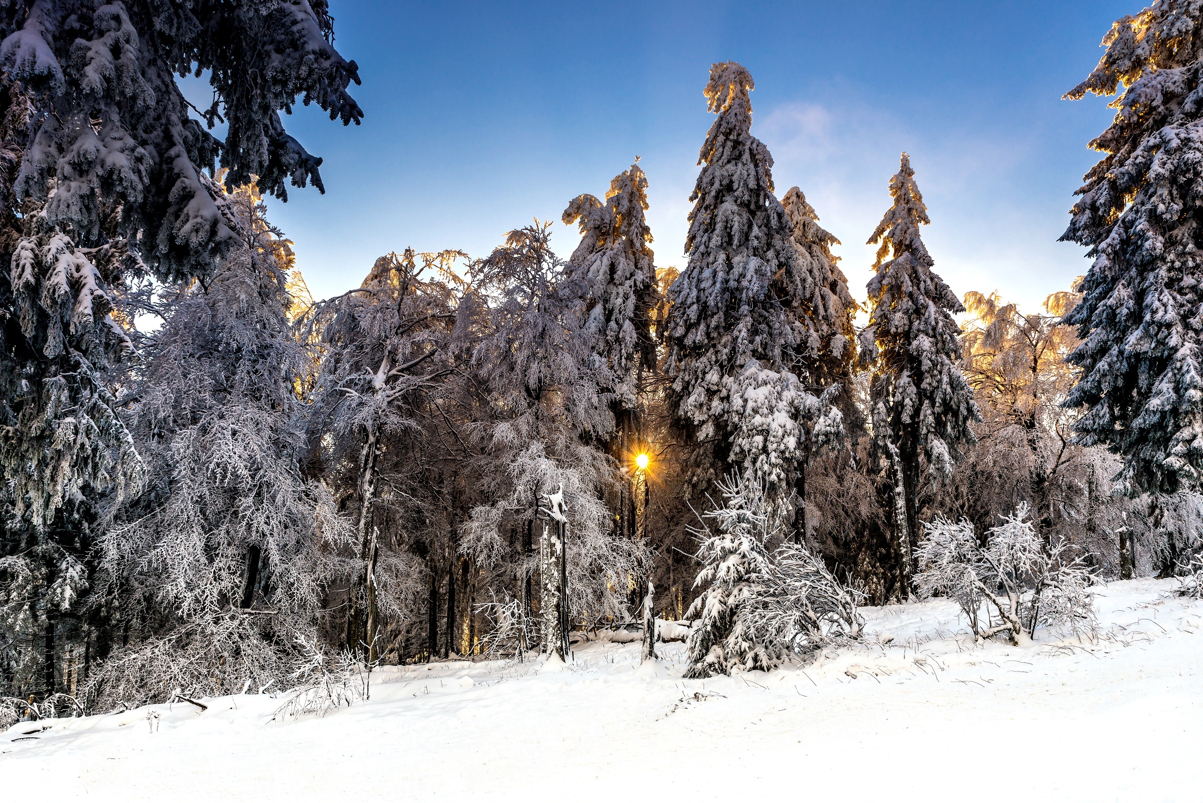 Edytor tapety: Zima, Las, Słońce, Ośnieżone, Drzewa