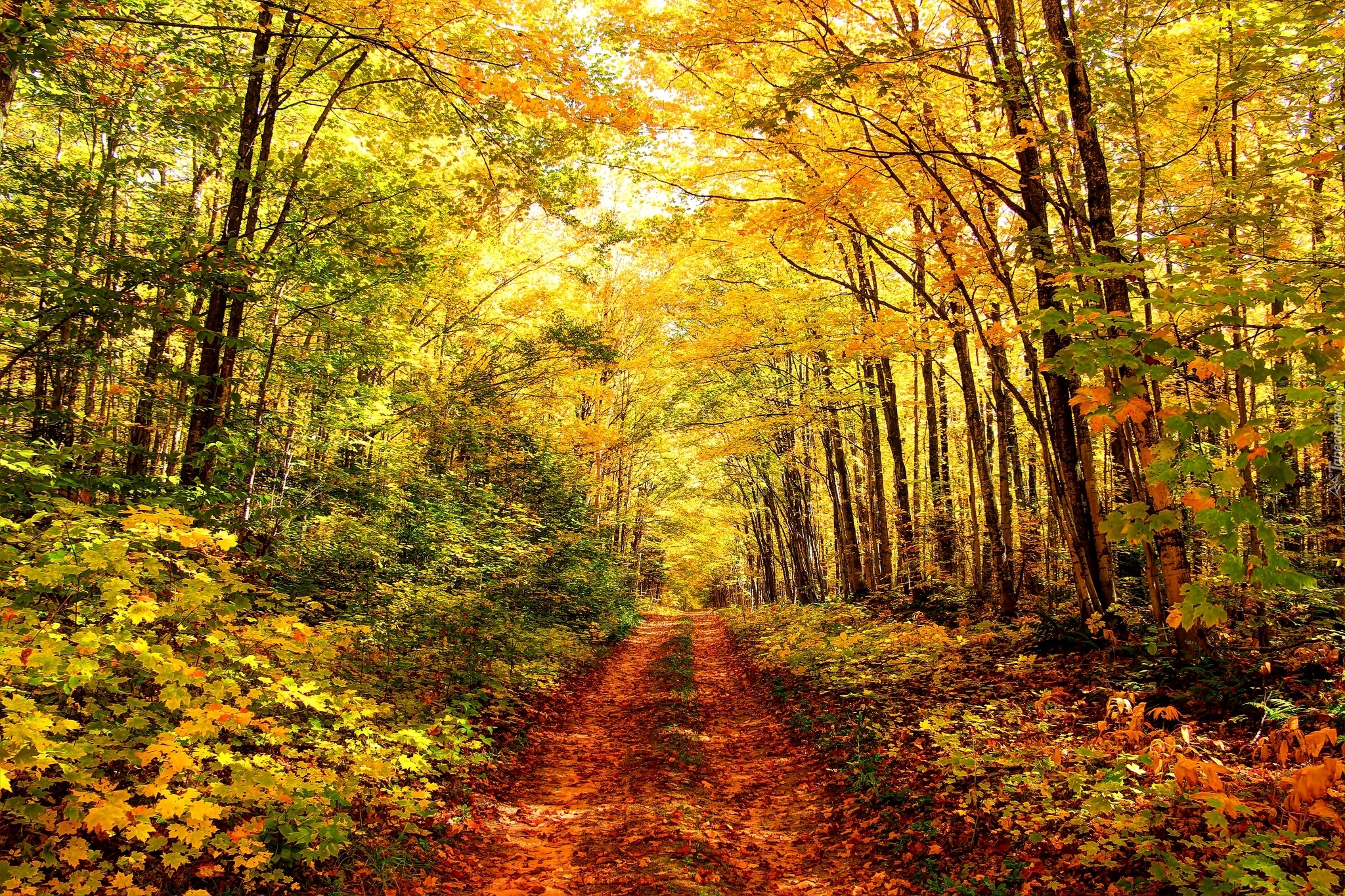 Edytor tapety: Jesień, Las, Droga, Drzewa