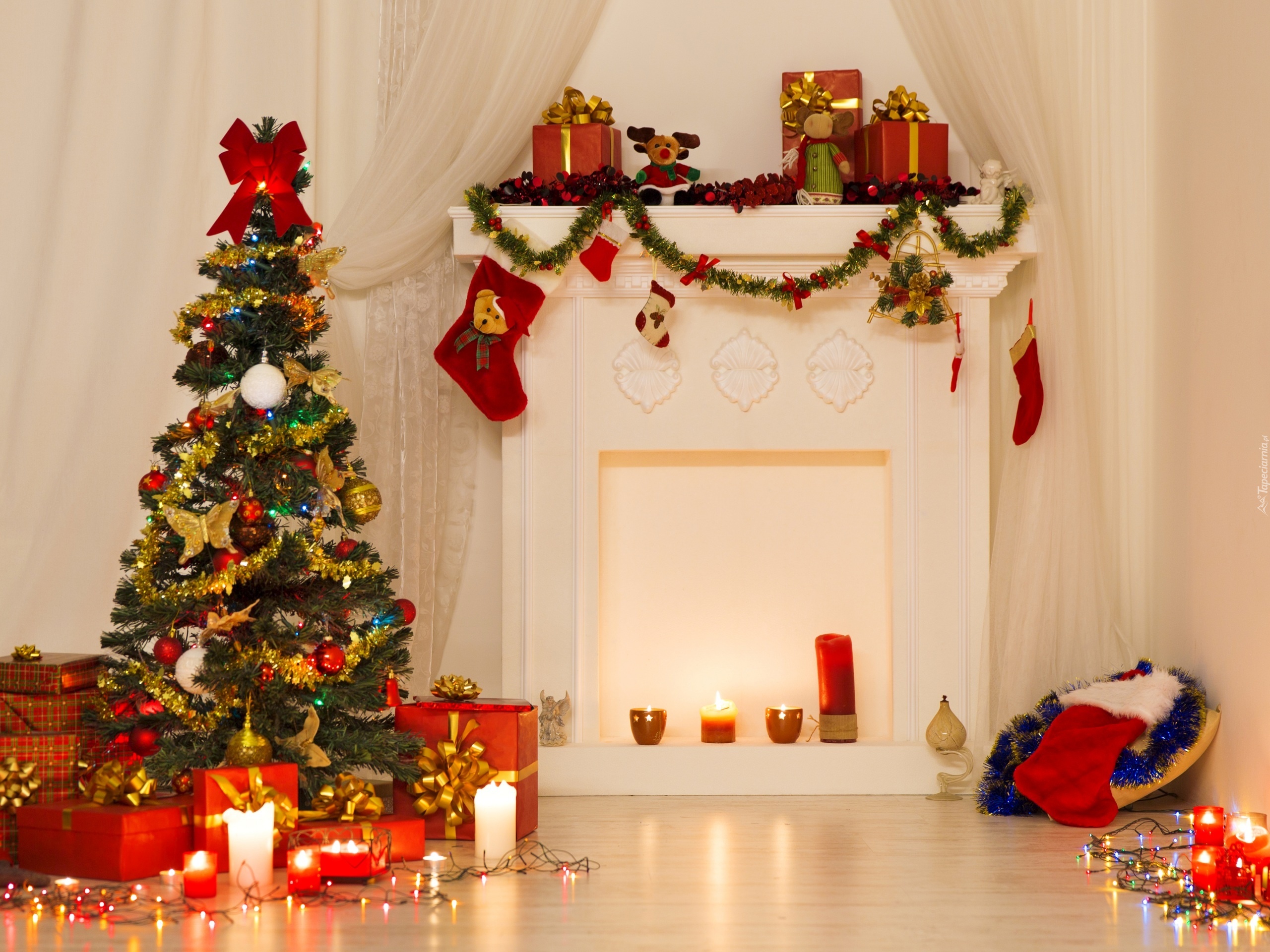 Edytor tapety: Choinka, Prezenty, Świeczki, Boże Narodzenie