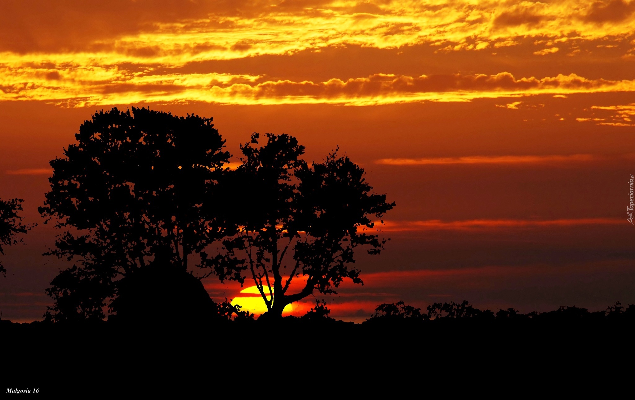 Edytor tapety: Zachód Słońca, Drzewa