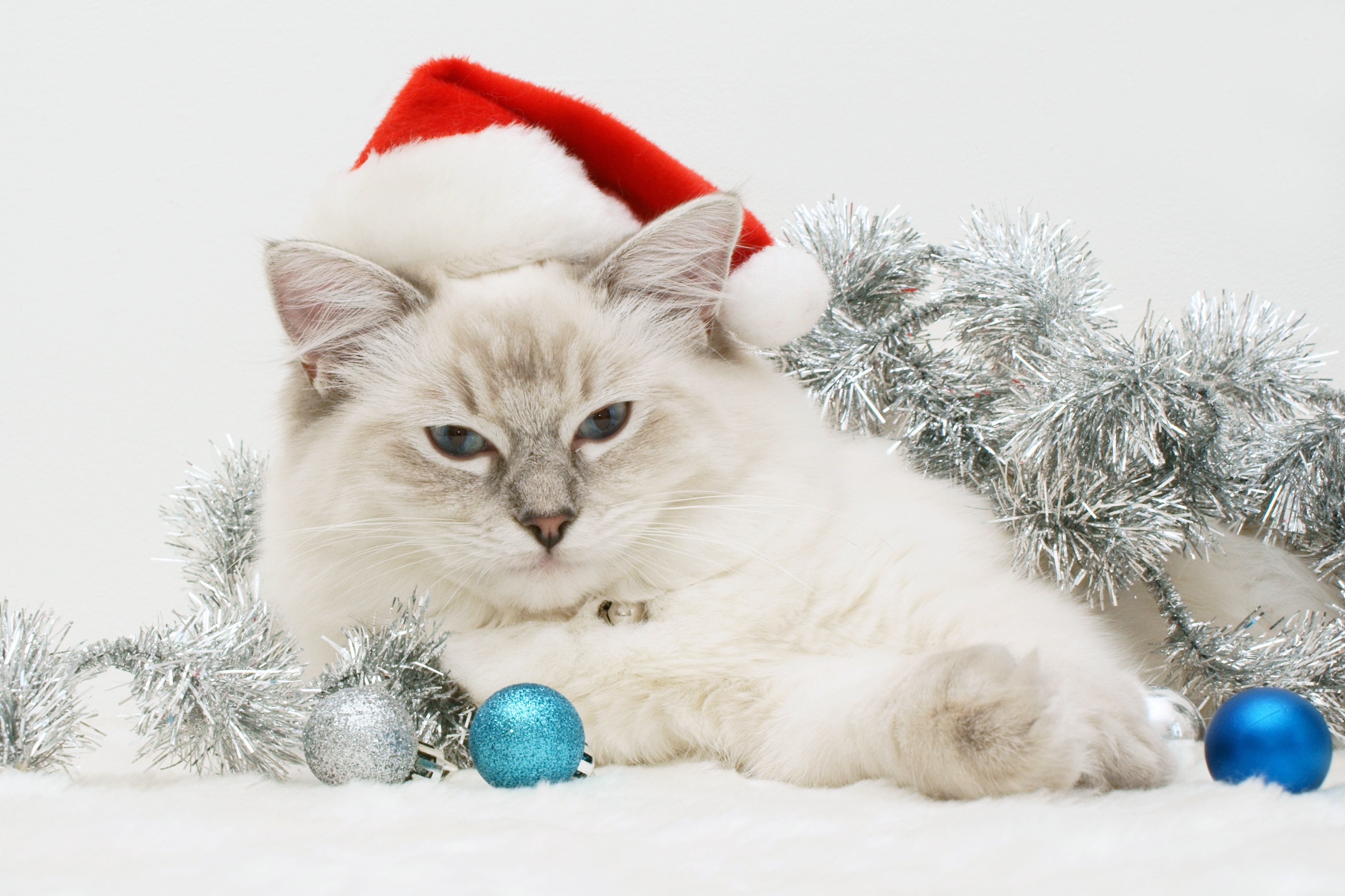 Edytor tapety: Kotek, Bombki, Czapka, Mikołaja, Lameta
