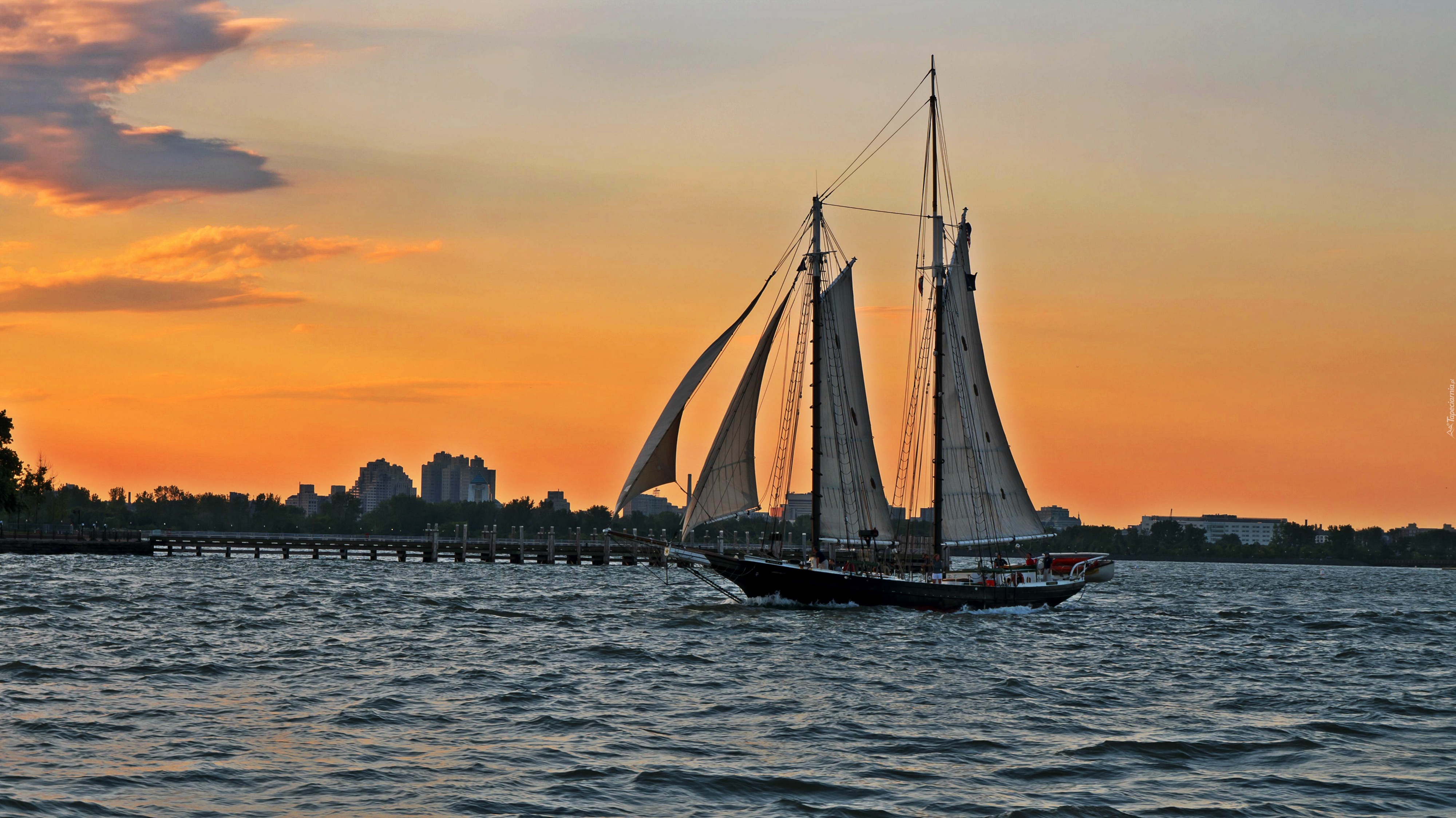 Edytor tapety: Jezioro, Statek, Zachód słońca