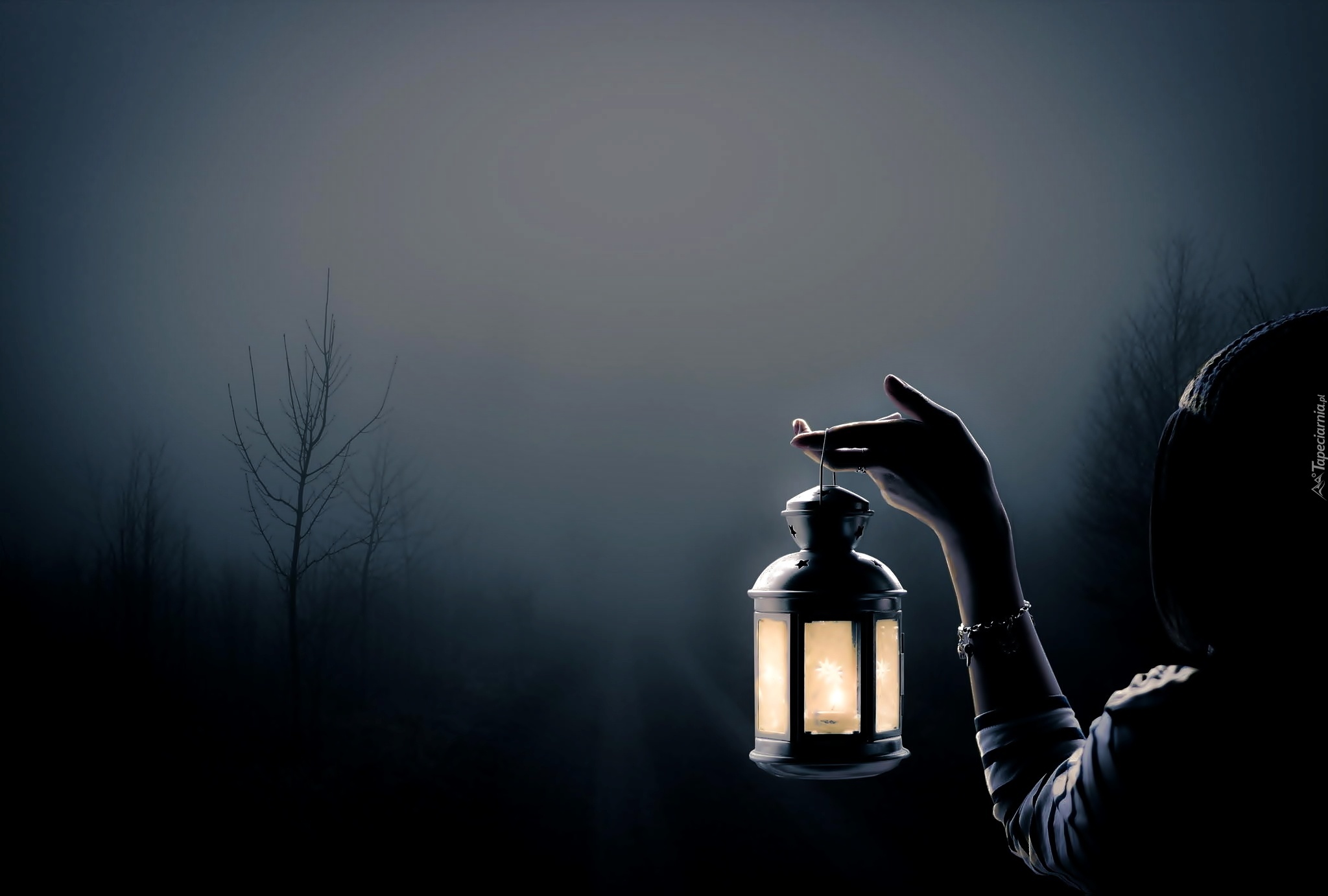 Edytor tapety: Kobieta, Lampion, Noc, Mgła