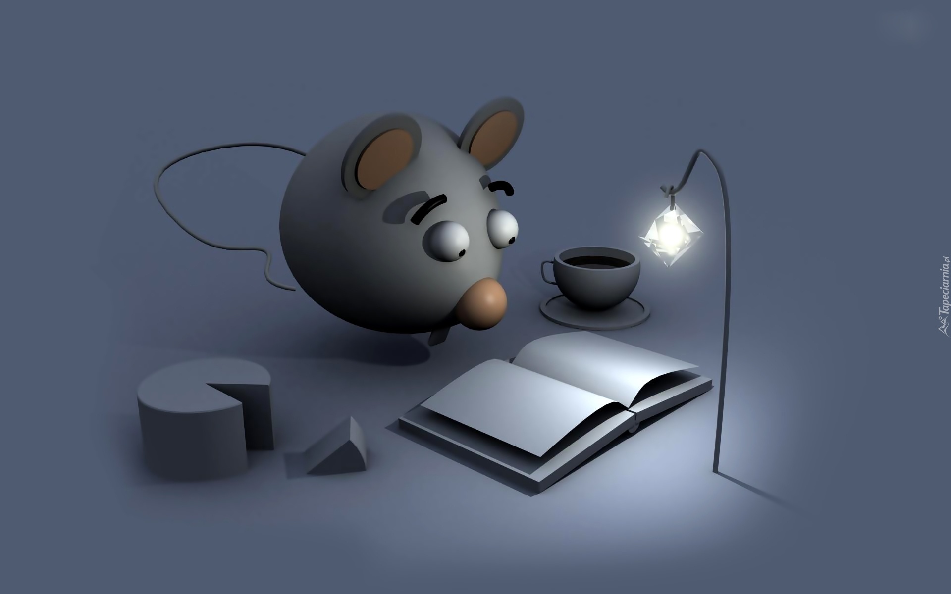 Edytor tapety: 3D, Myszka, Książka, Filiżanka, Lampka