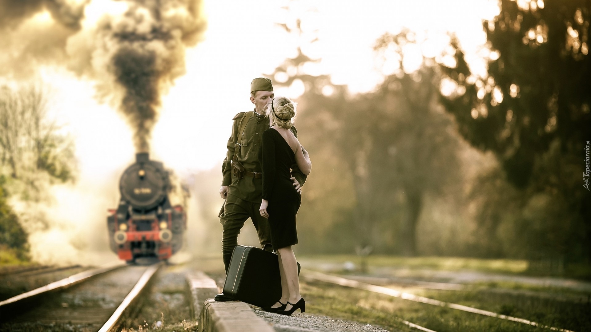 Edytor tapety: Żołnierz, Dziewczyna, Pożegnanie, Pociąg