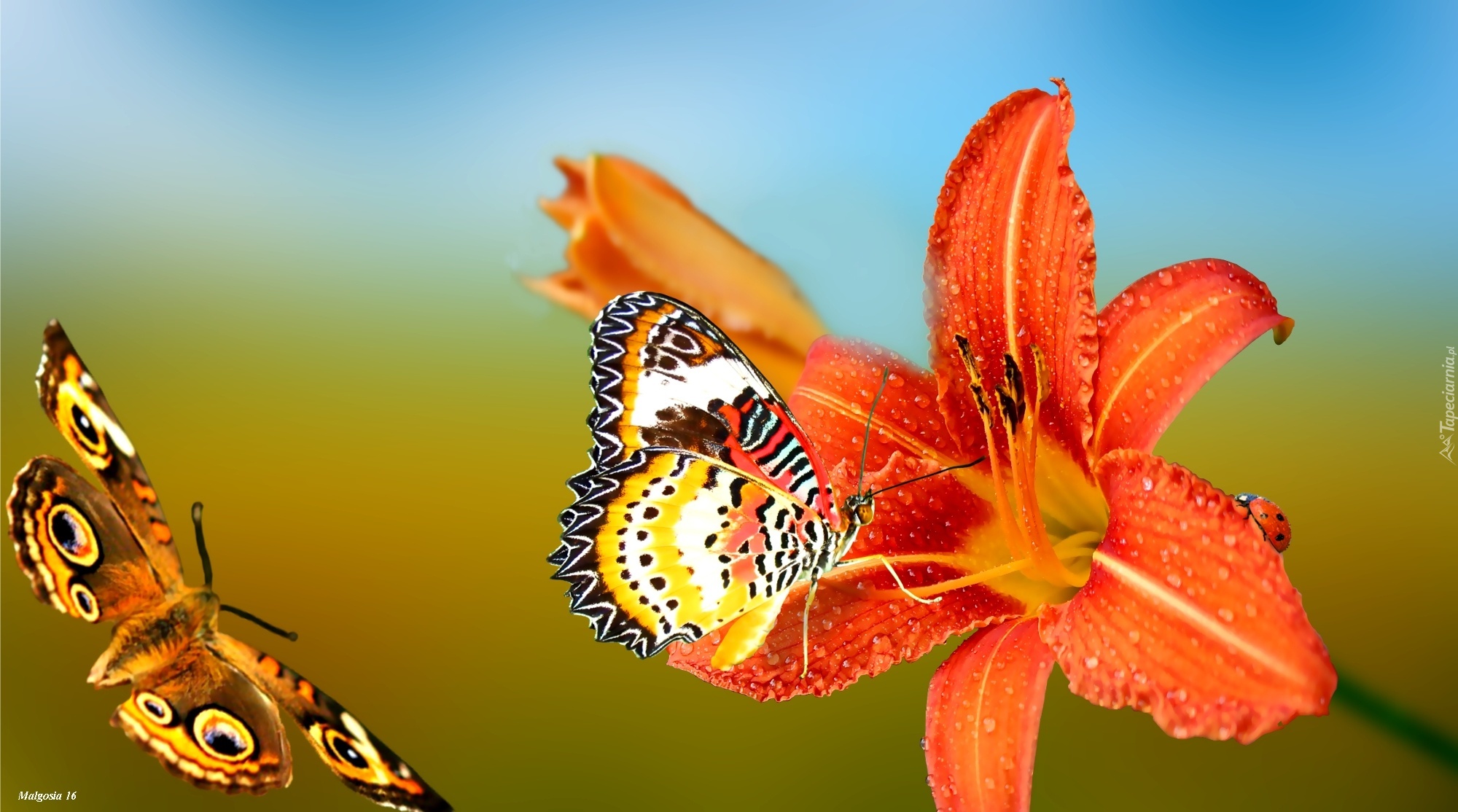 Edytor tapety: Liliowiec, Motyle, Rosa, Biedronka